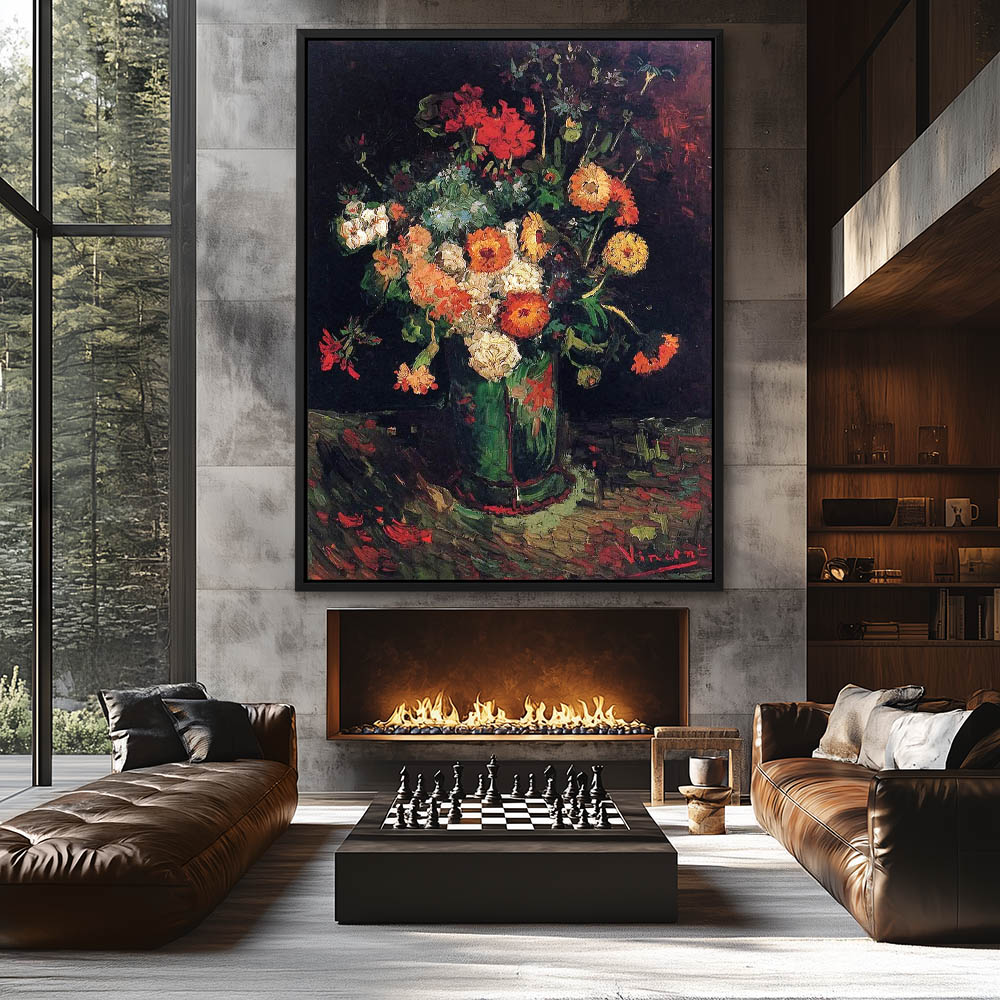 Vase with Zinnias and Geraniums