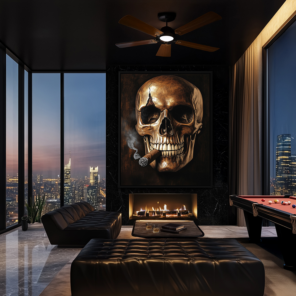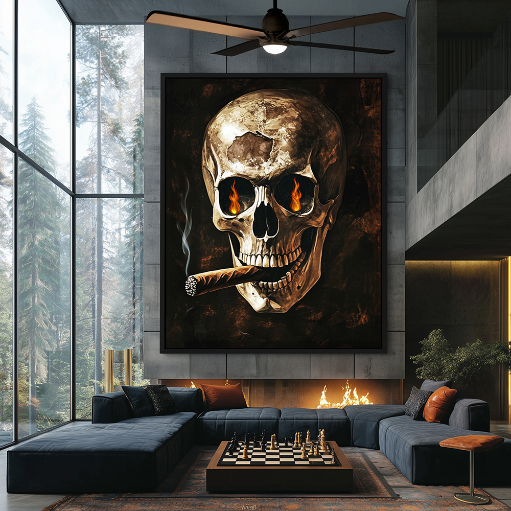 Skull of a Skeleton with Burning Cigarette
