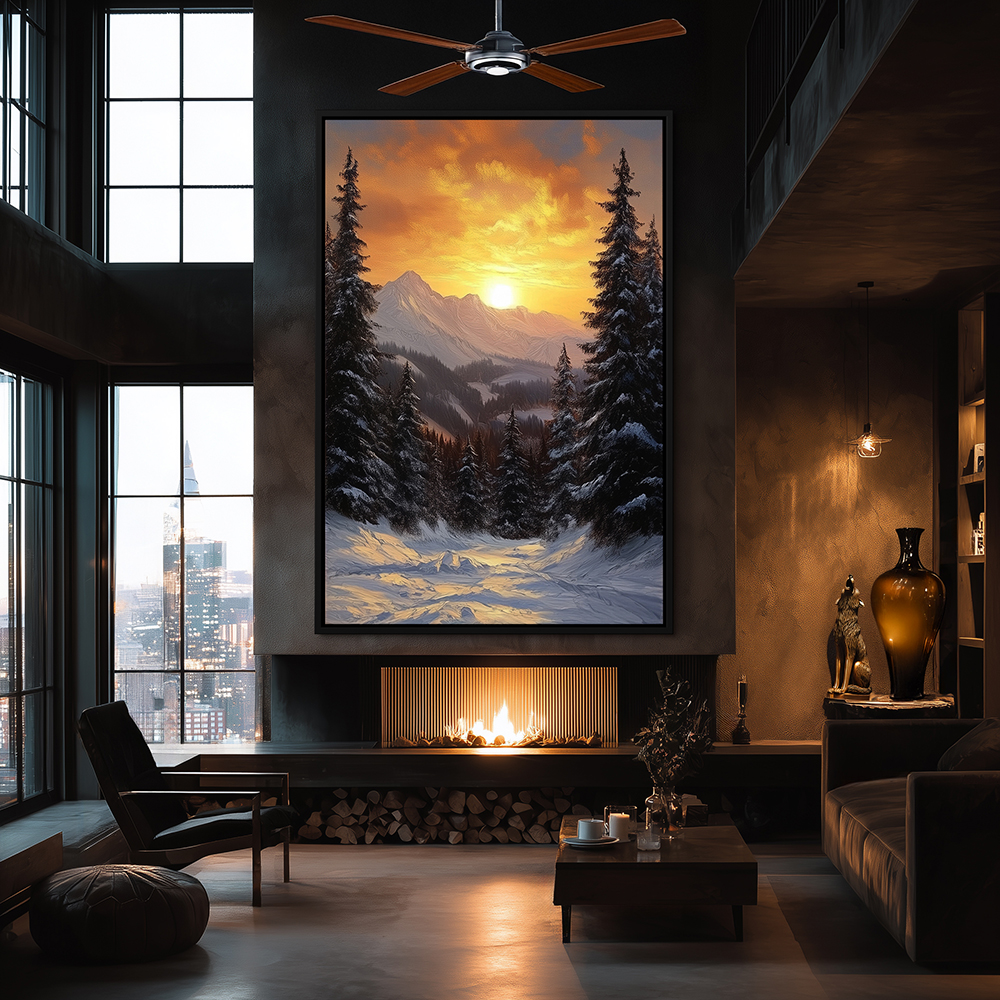 Landscape Painting of a Forest Sunset for Home Decor