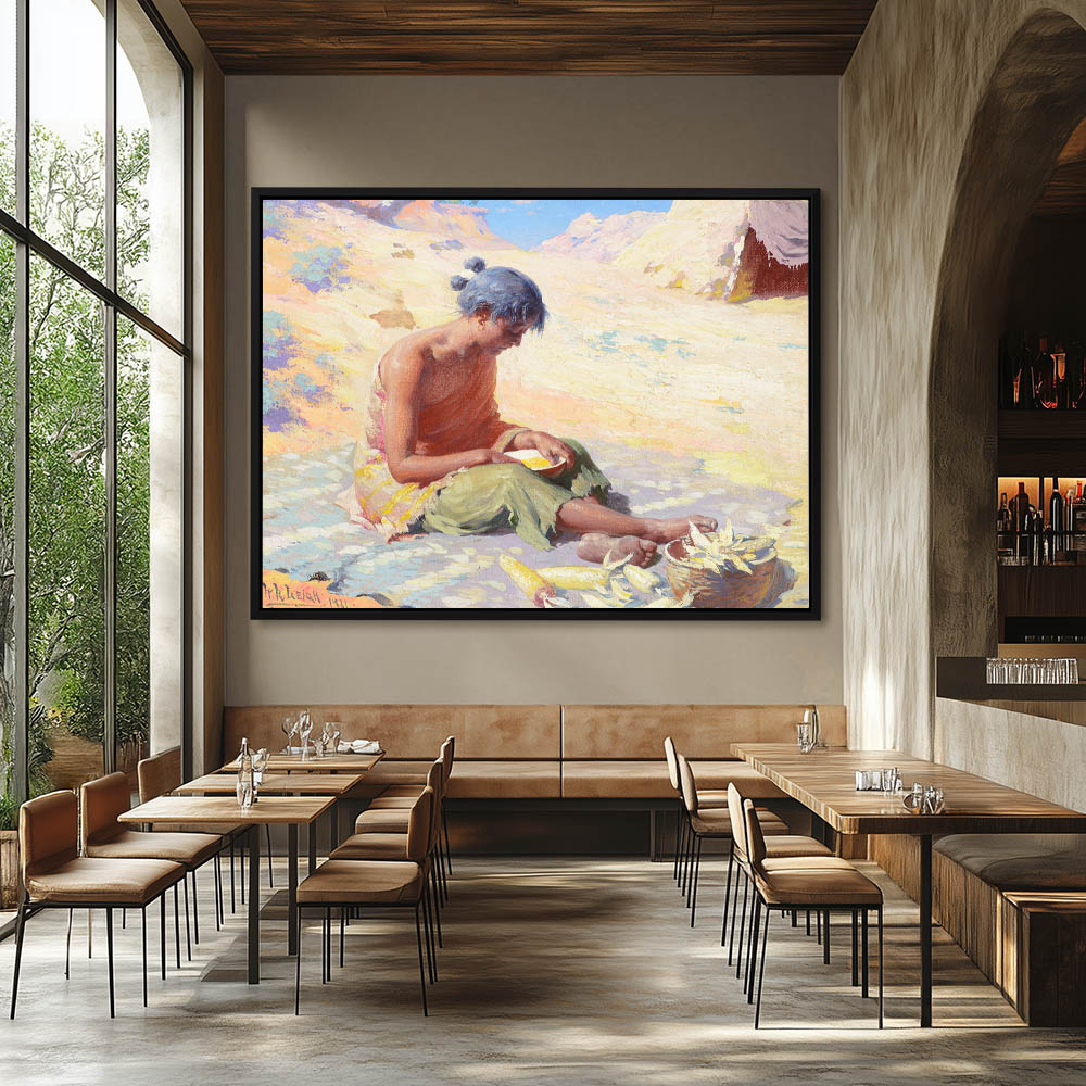 Navajo Girl Preparing Corn