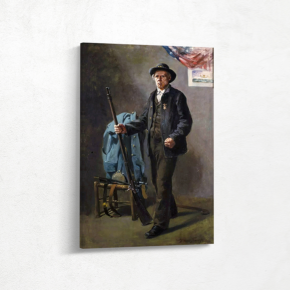 Vintage Figurative Painting of the Sheriff with His Rifle