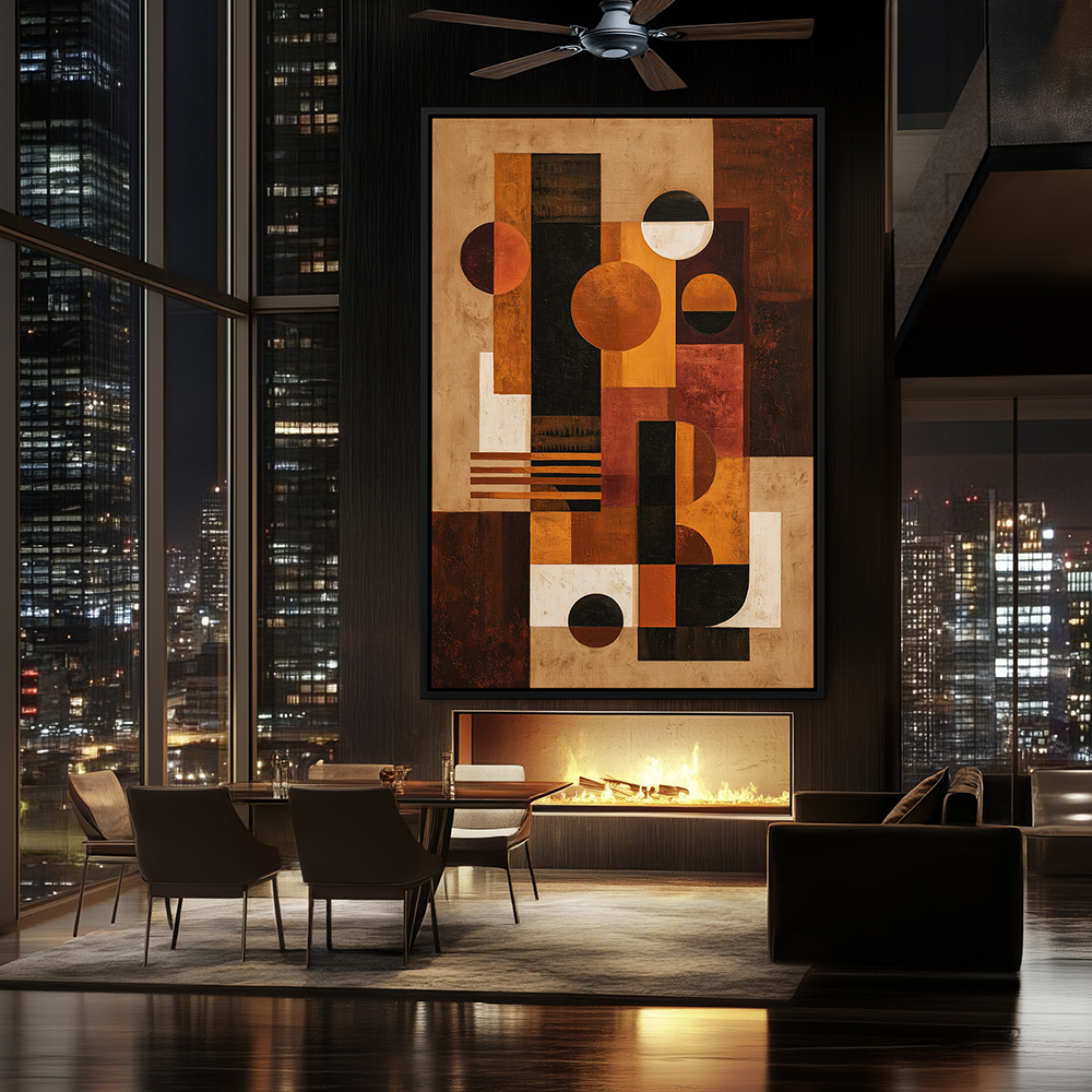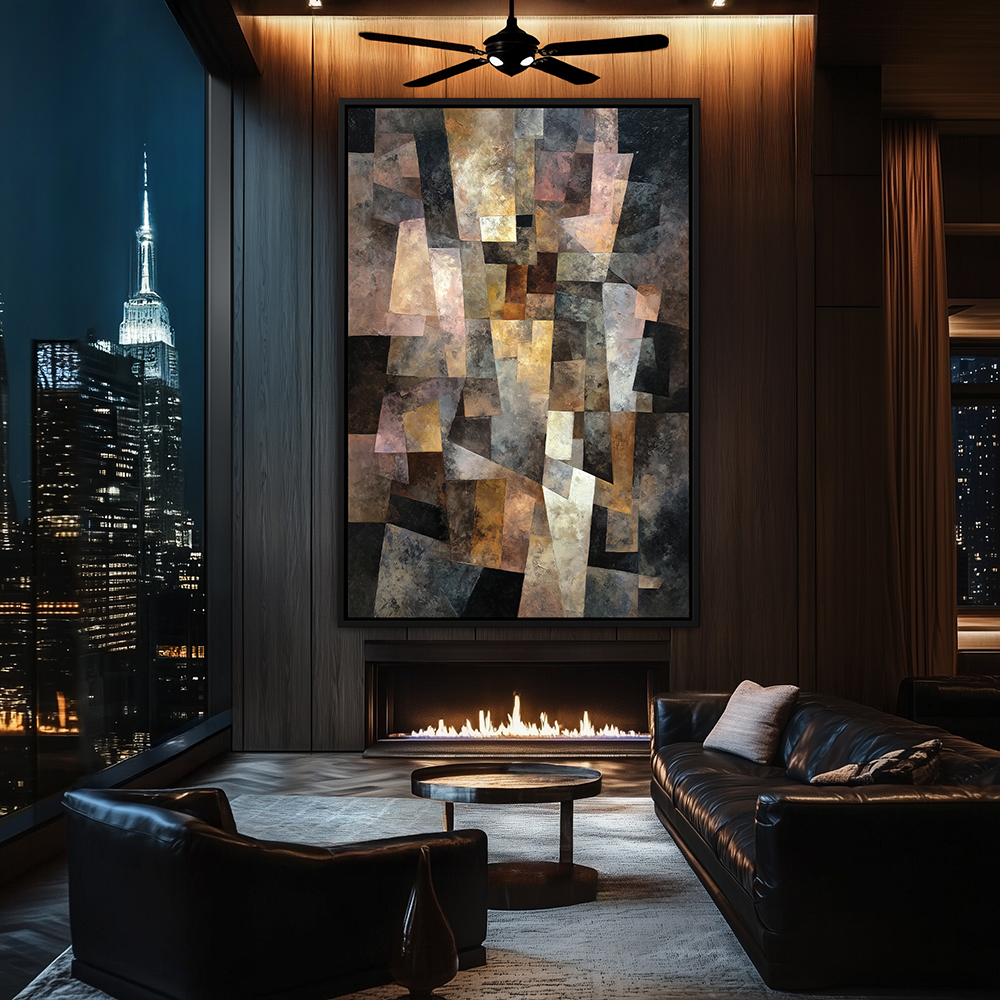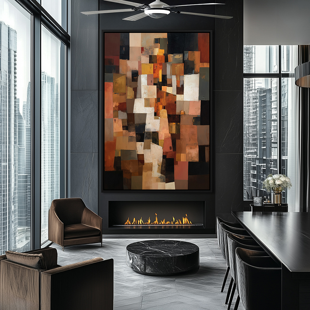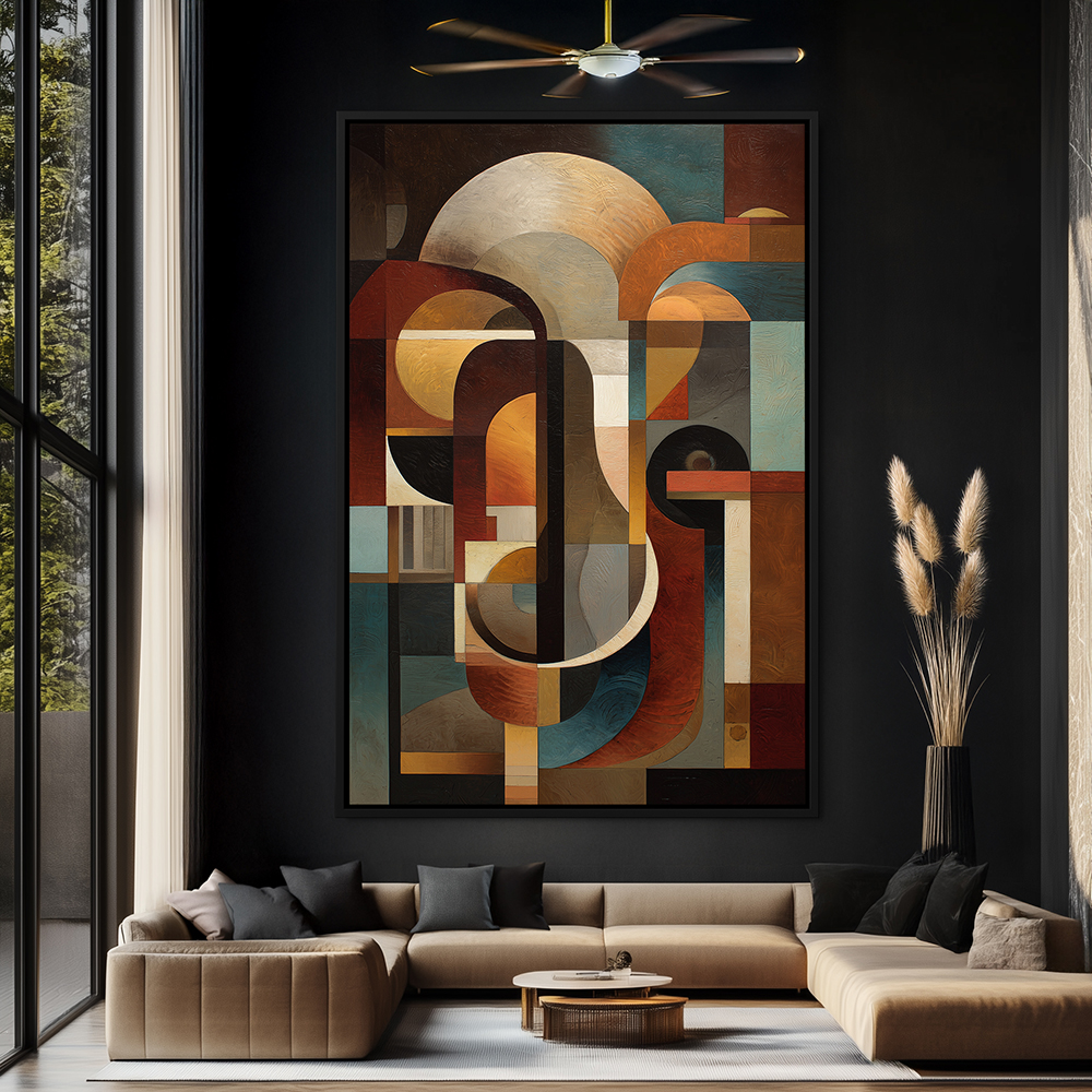 Abstract Cubist Composition Painting | Modern Geometric Wall Art in Warm Tones