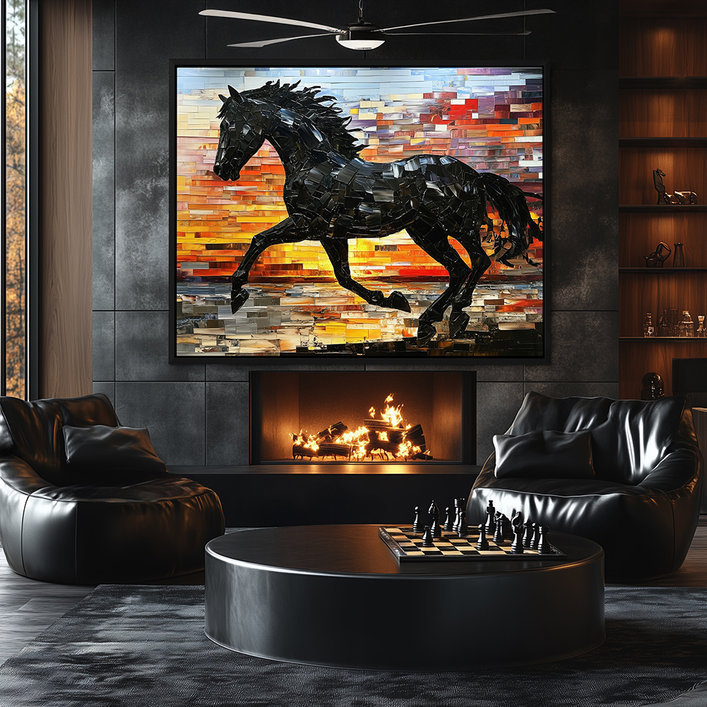 Mosaic Wall Art Painting of a Horse at Sunset