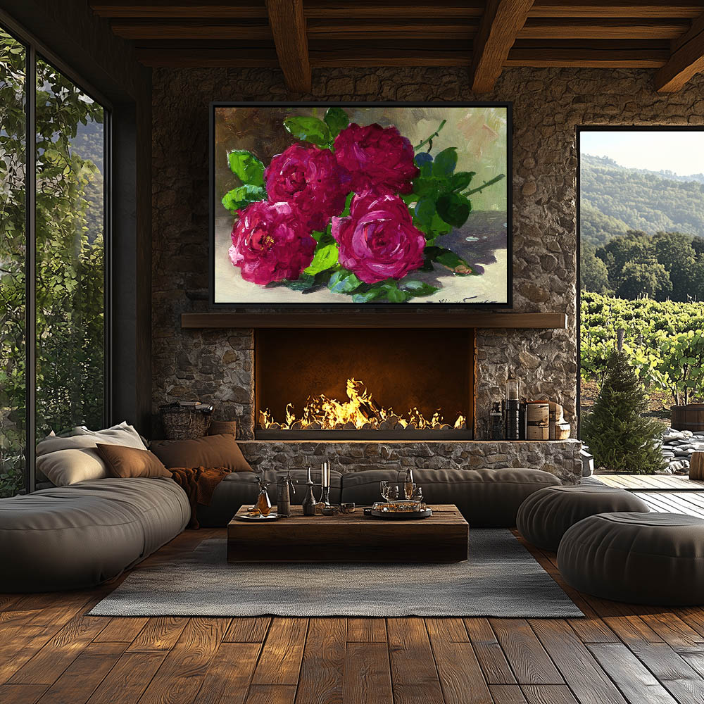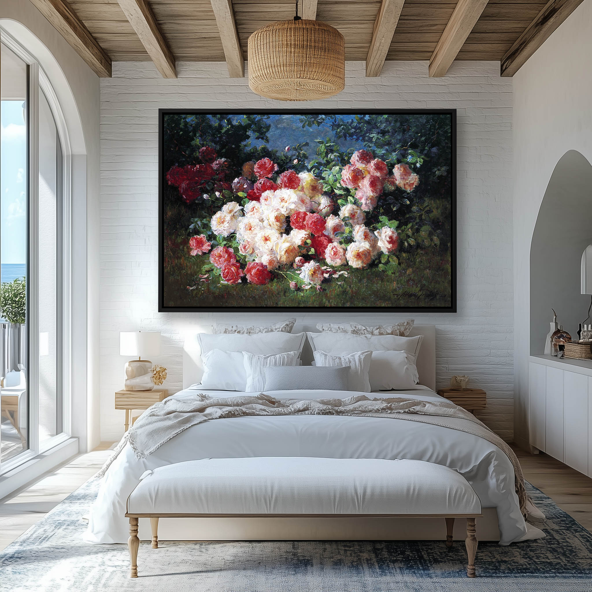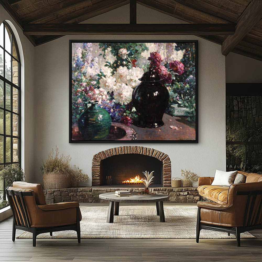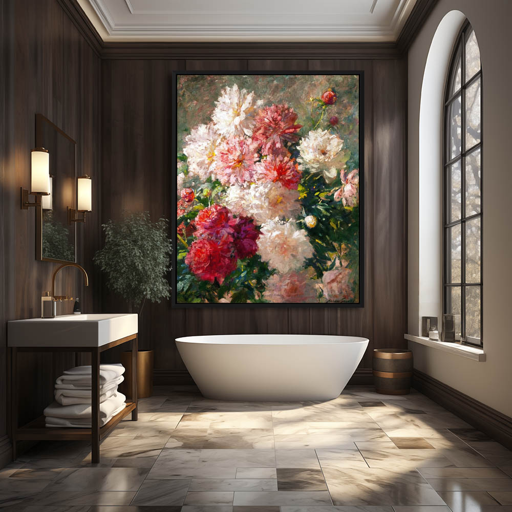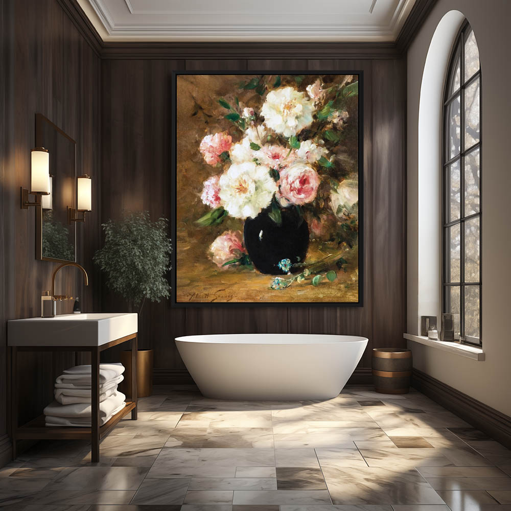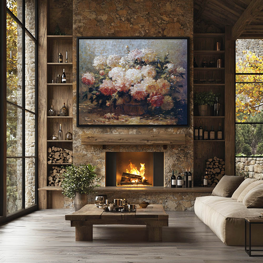 Vintage Still Life Flower Painting with Peonies and a Chinese Jar