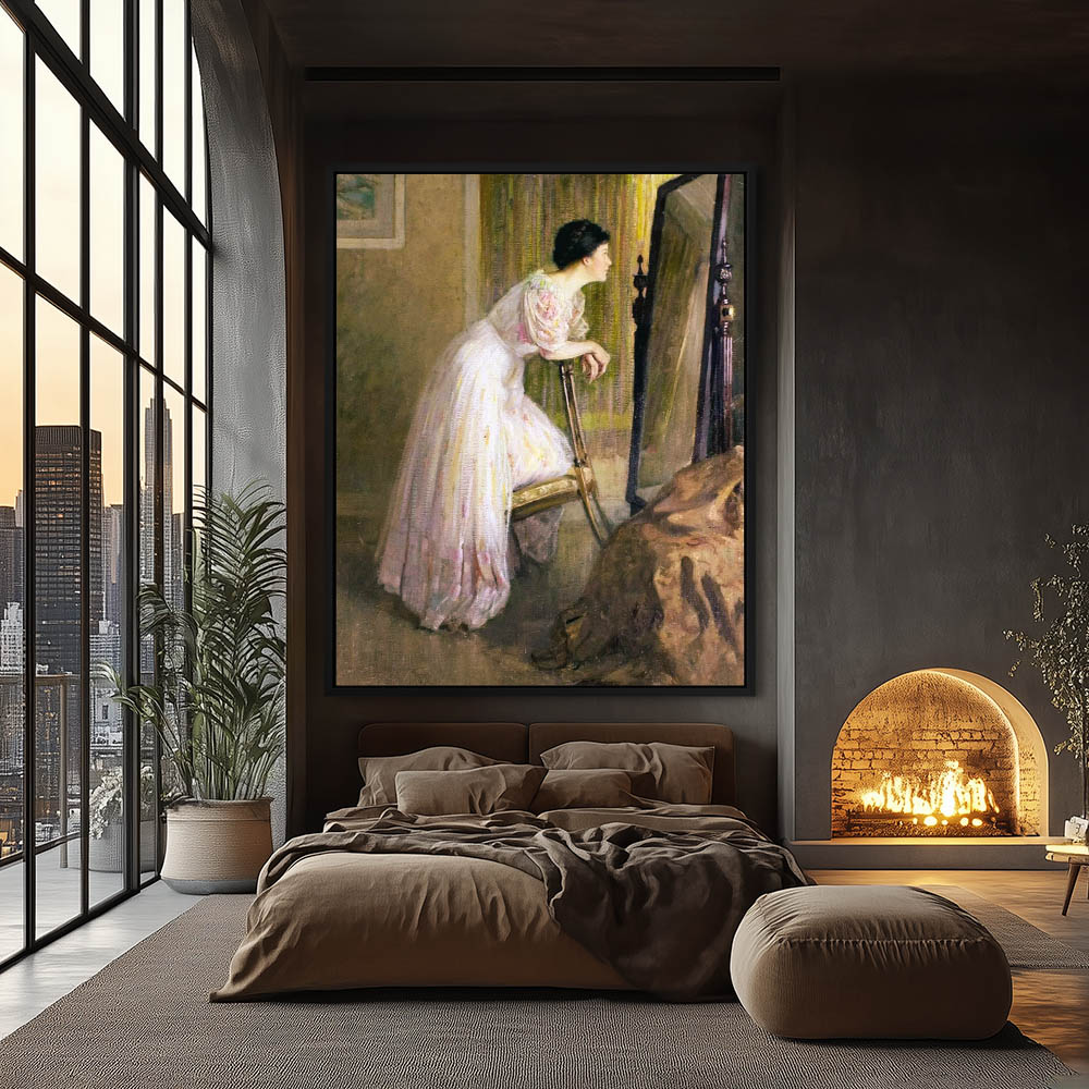 Vintage Figurative Painting of a Lady Standing in Front of the Mirror