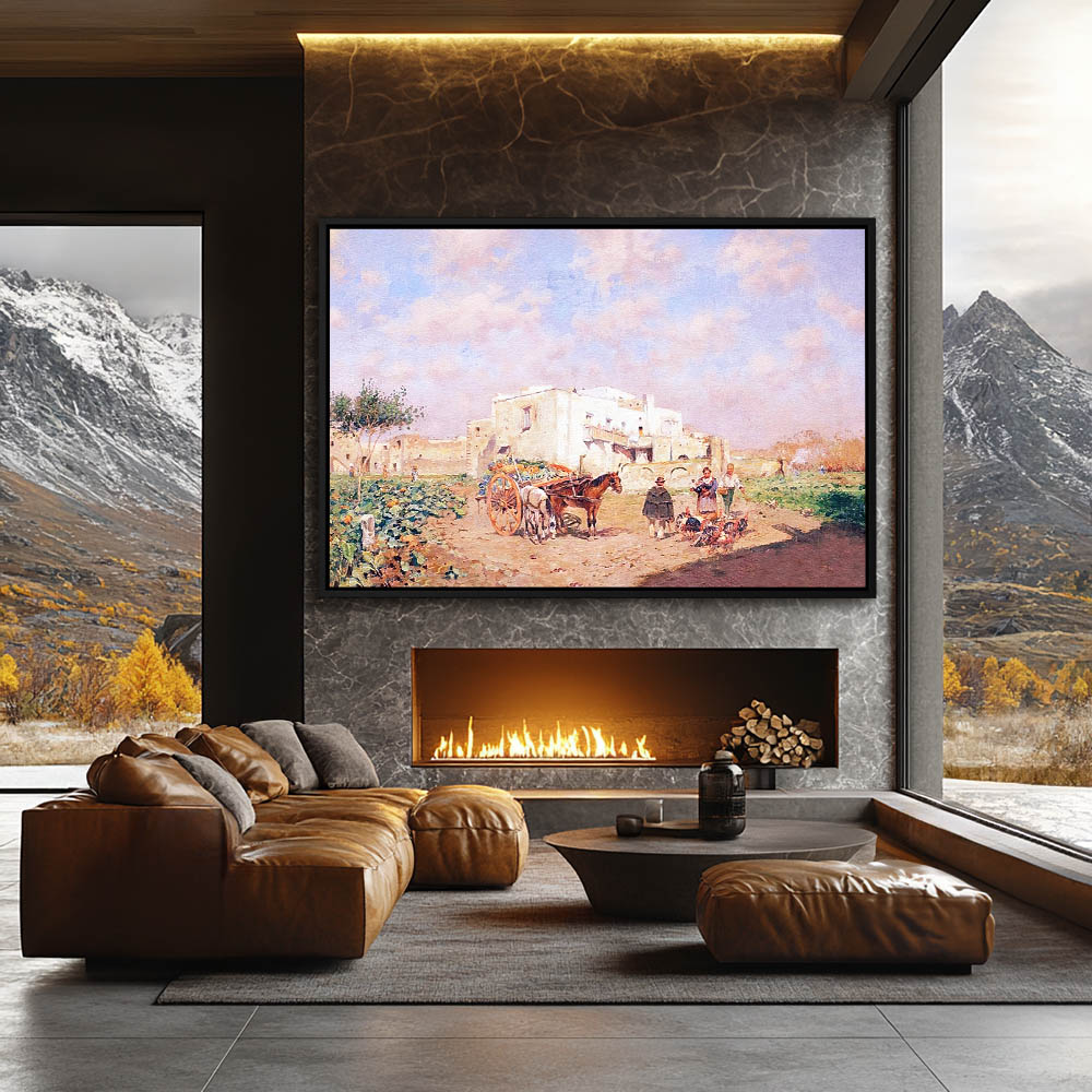 a Painting of Figures with Turkeys Horses and Grocery Goods