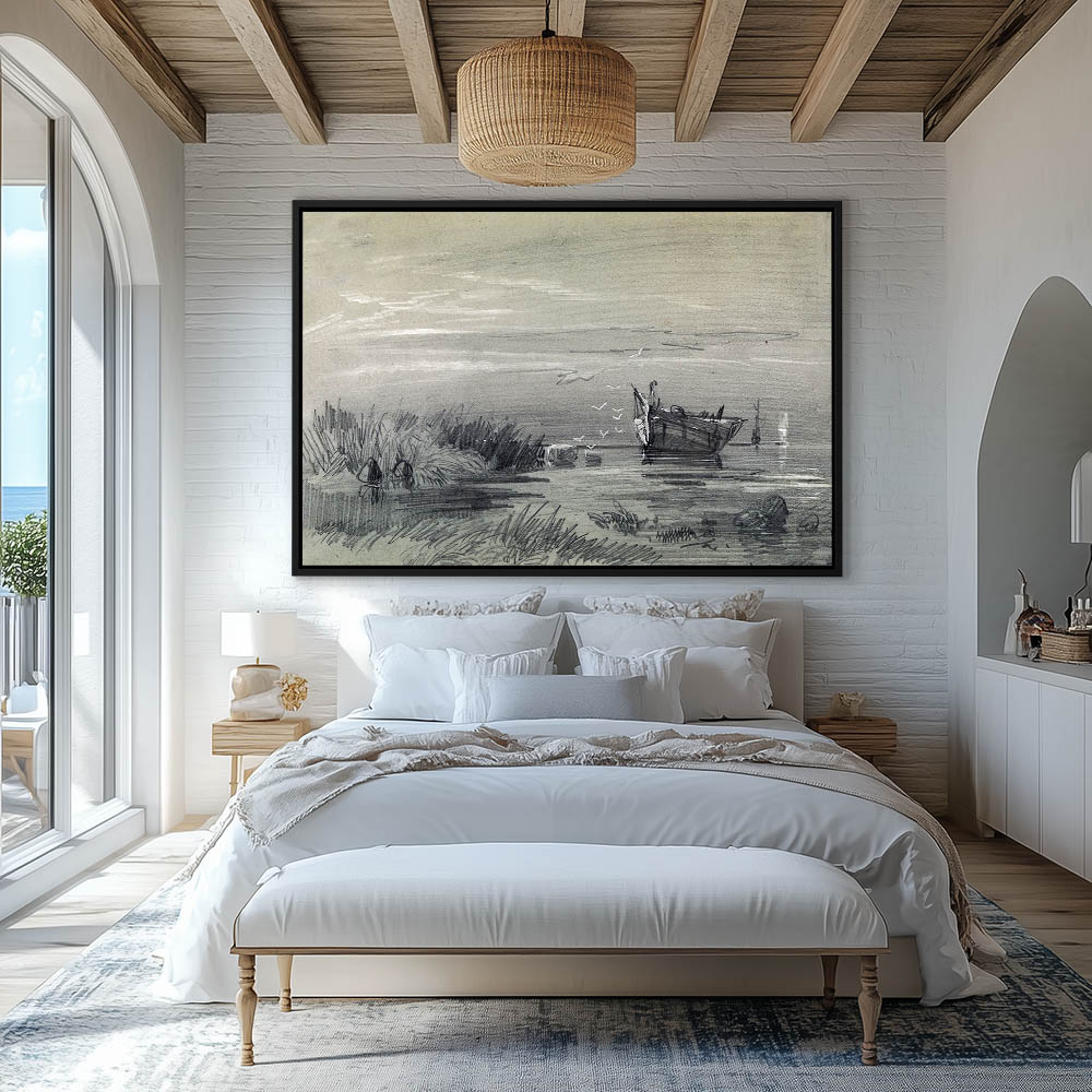 Coastal Drawing with Marsh and Boat
