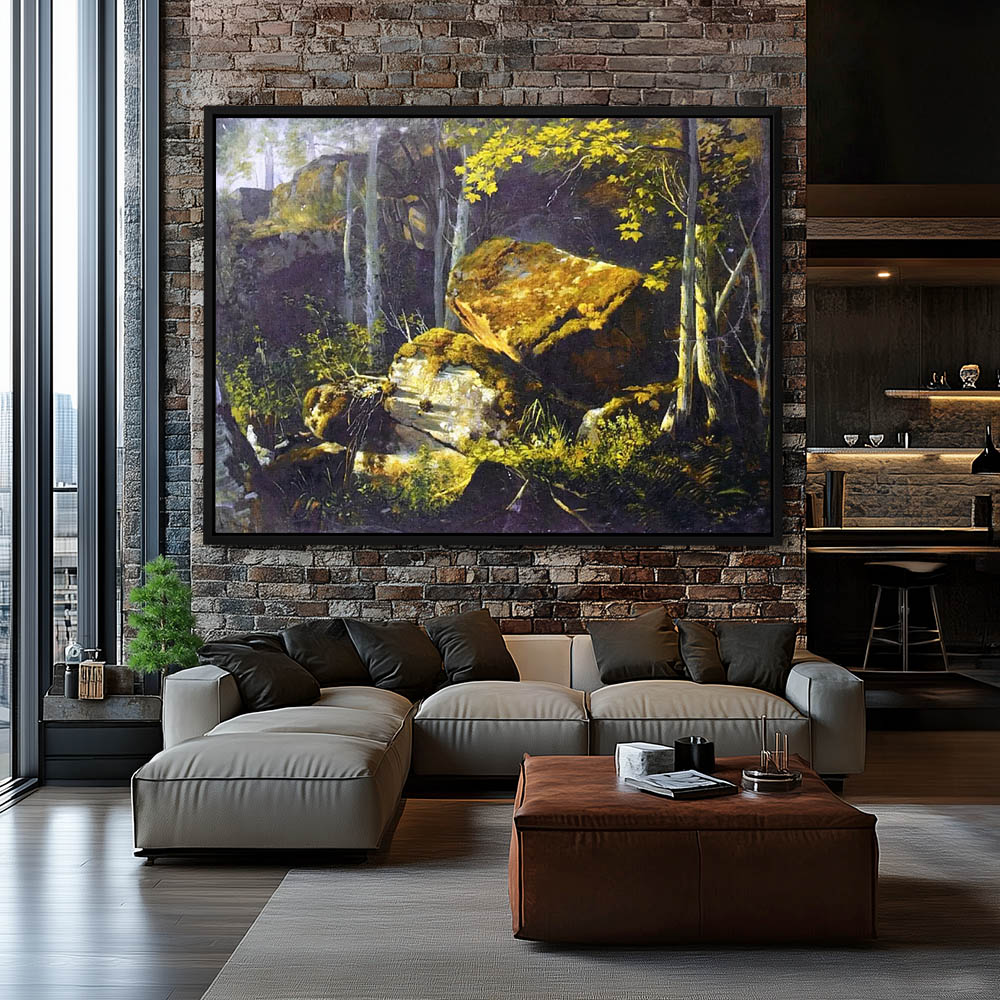 Forest Landscape Painting with Rocks and Trees
