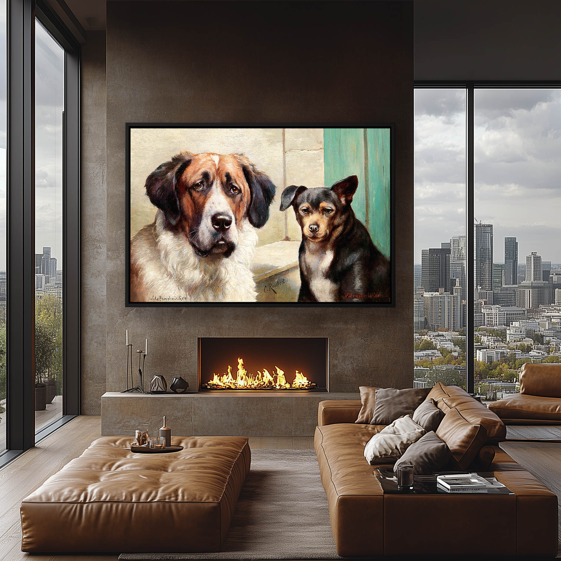 Two dogs sitting together