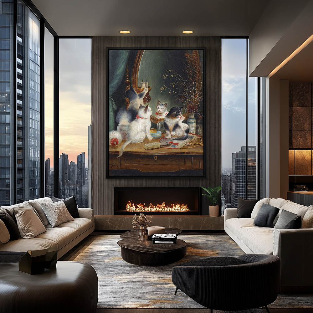 Three kittens on top of a mirrored vanity