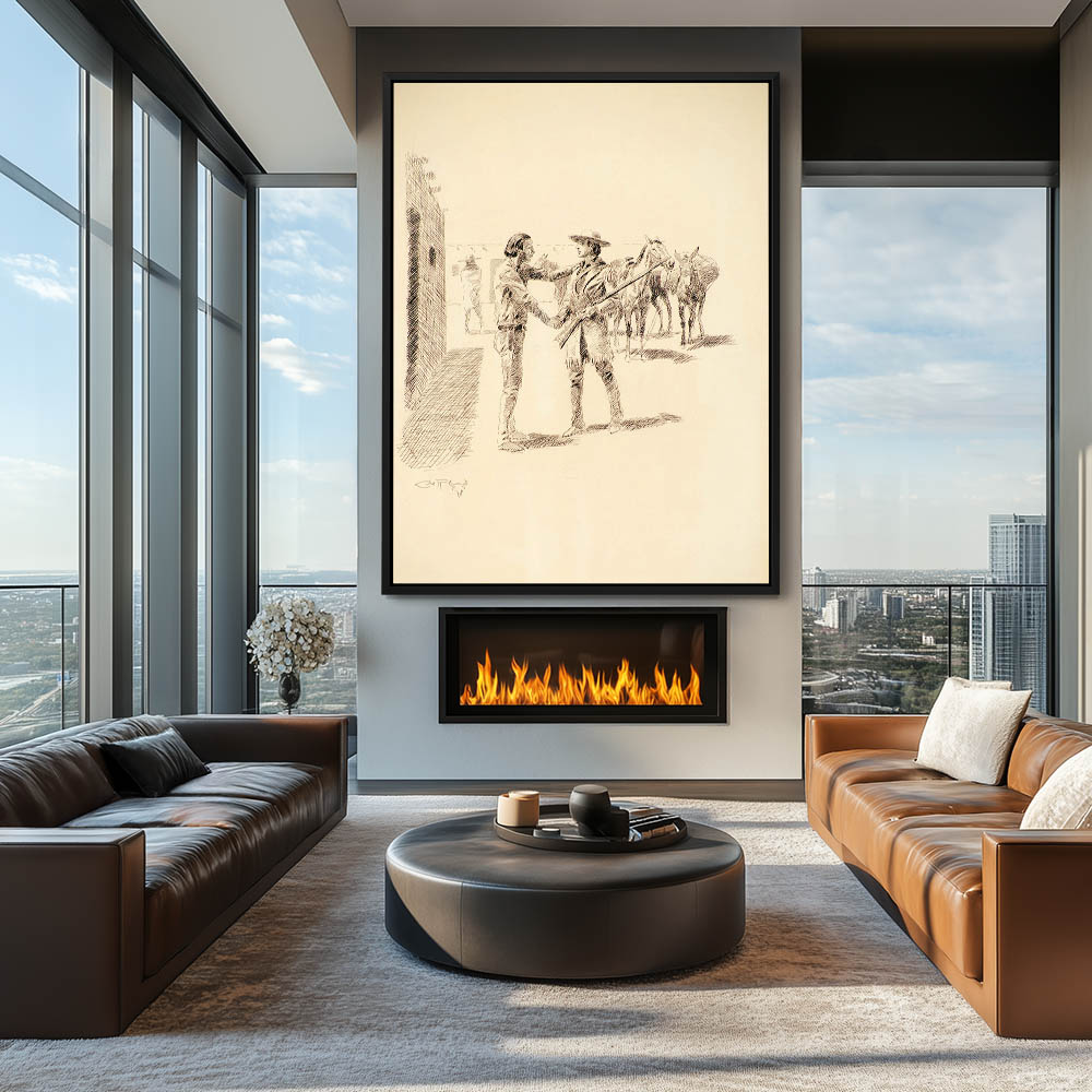 Drawing of two men shaking hands saying goodbye