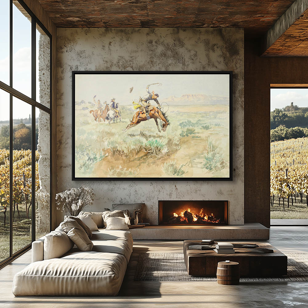 Cowboy riding a bucking horse white others watch