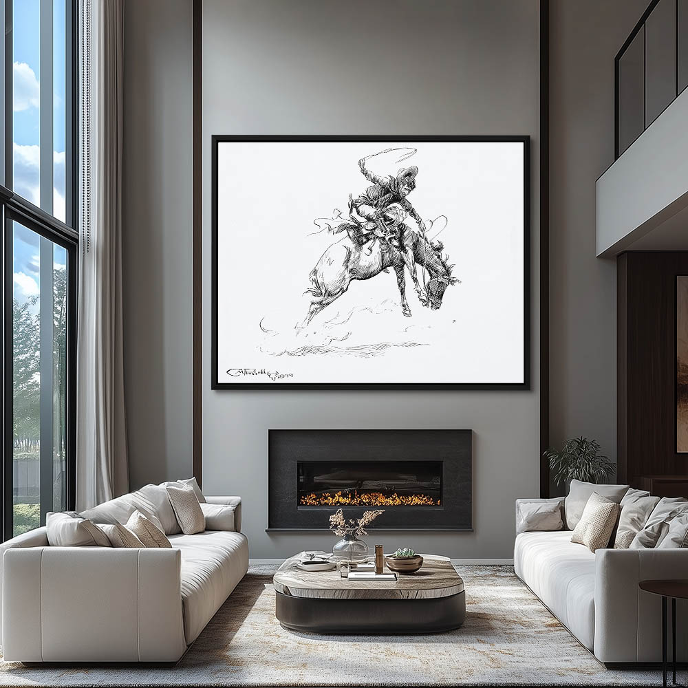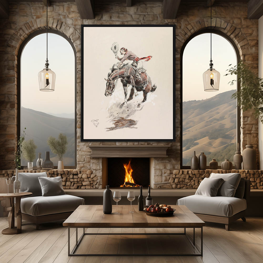Sketch of a cowboy riding a bucking horse