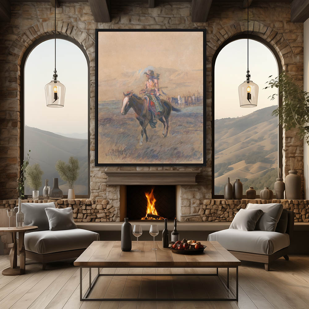Beautiful Vintage Painting by Charles Russell, comes in Vinyl Wall Peel, Metal Wall Art, Fine Art Print, Framed Prints, Poster Print, Curators Choice would be Extra Large Canvas Wall Art framed in a Floater Frame