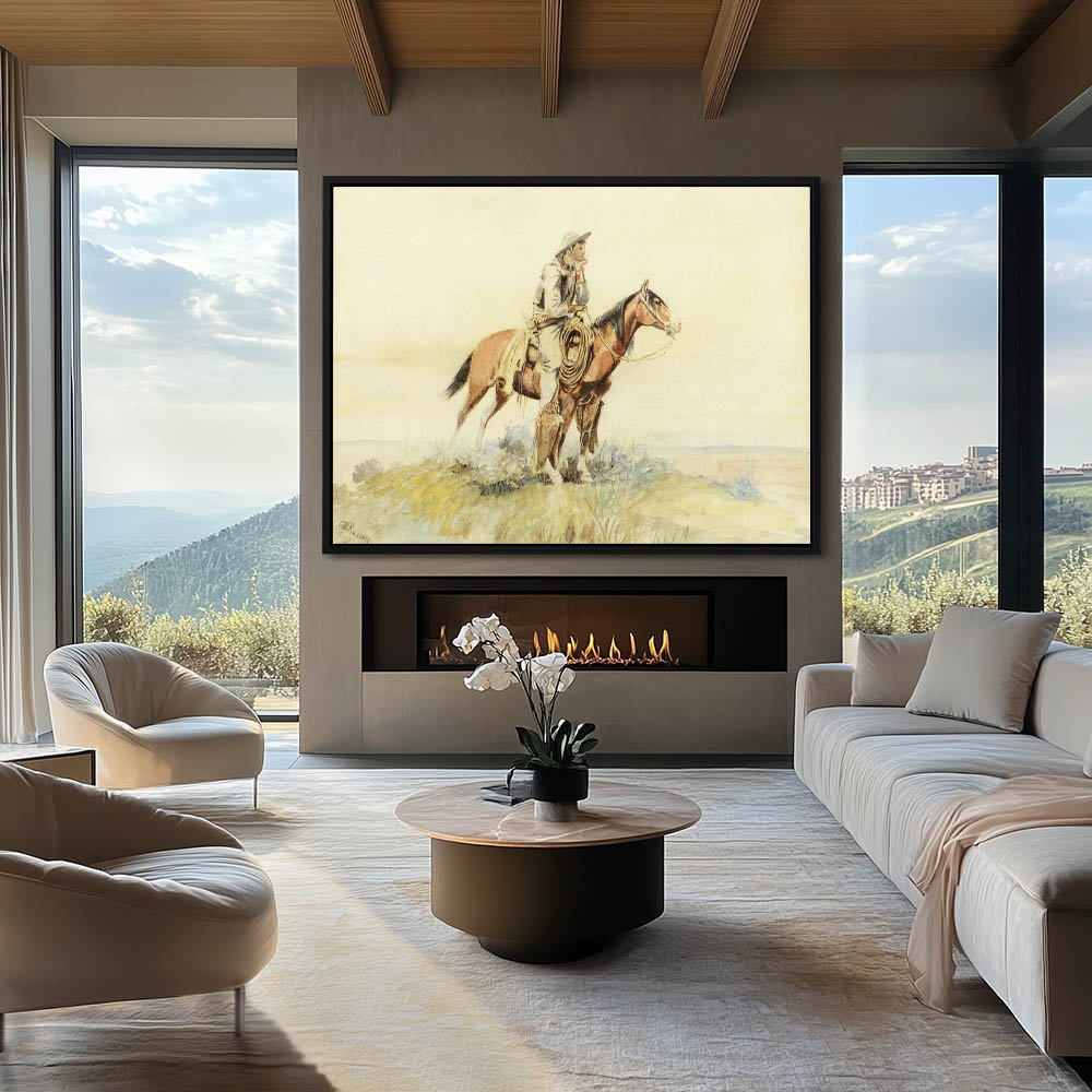 Cowboy on horseback, taking in the view