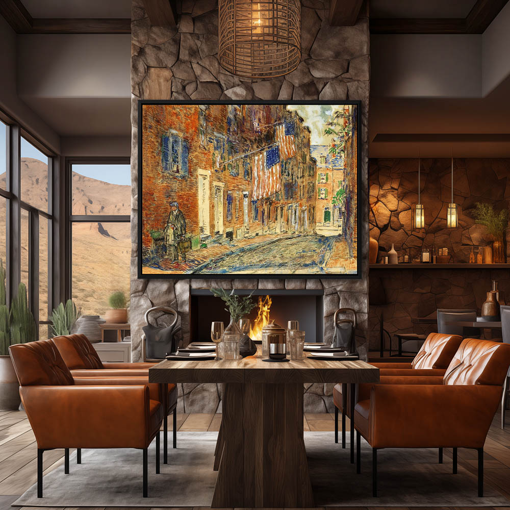 Women in a courtyard tending flowers and reading with morning sunlight streaming through