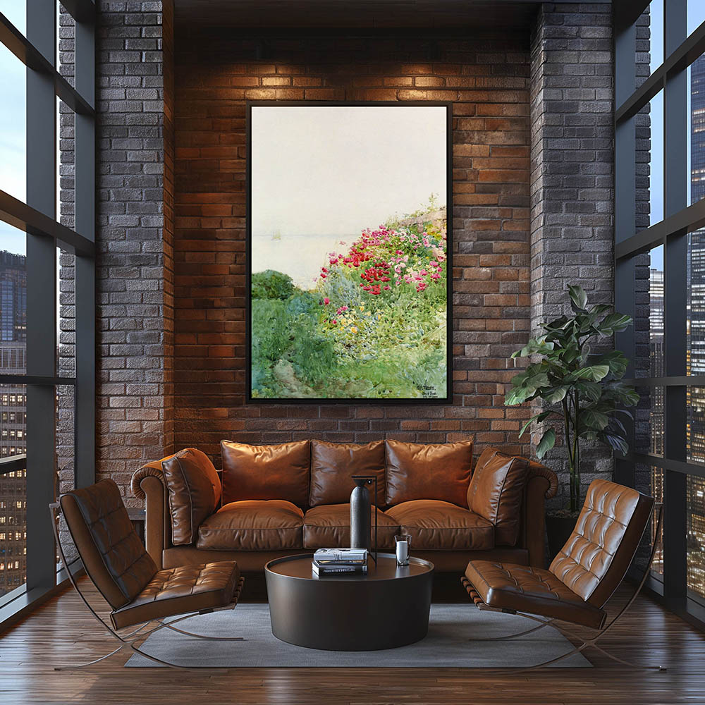 Field of poppies on the shoreline