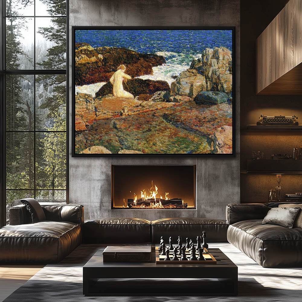 Female nude on a rocky shoreline