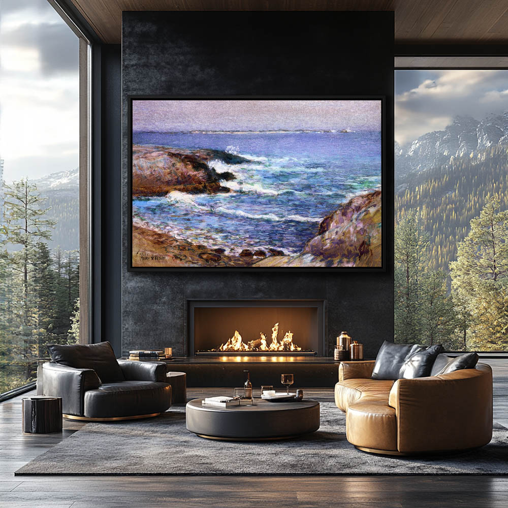 Flower garden with rocky shoreline beyond