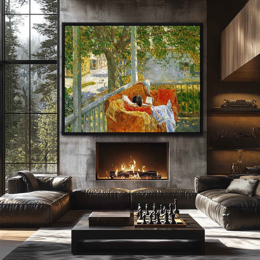 Woman reading on an outside sofa