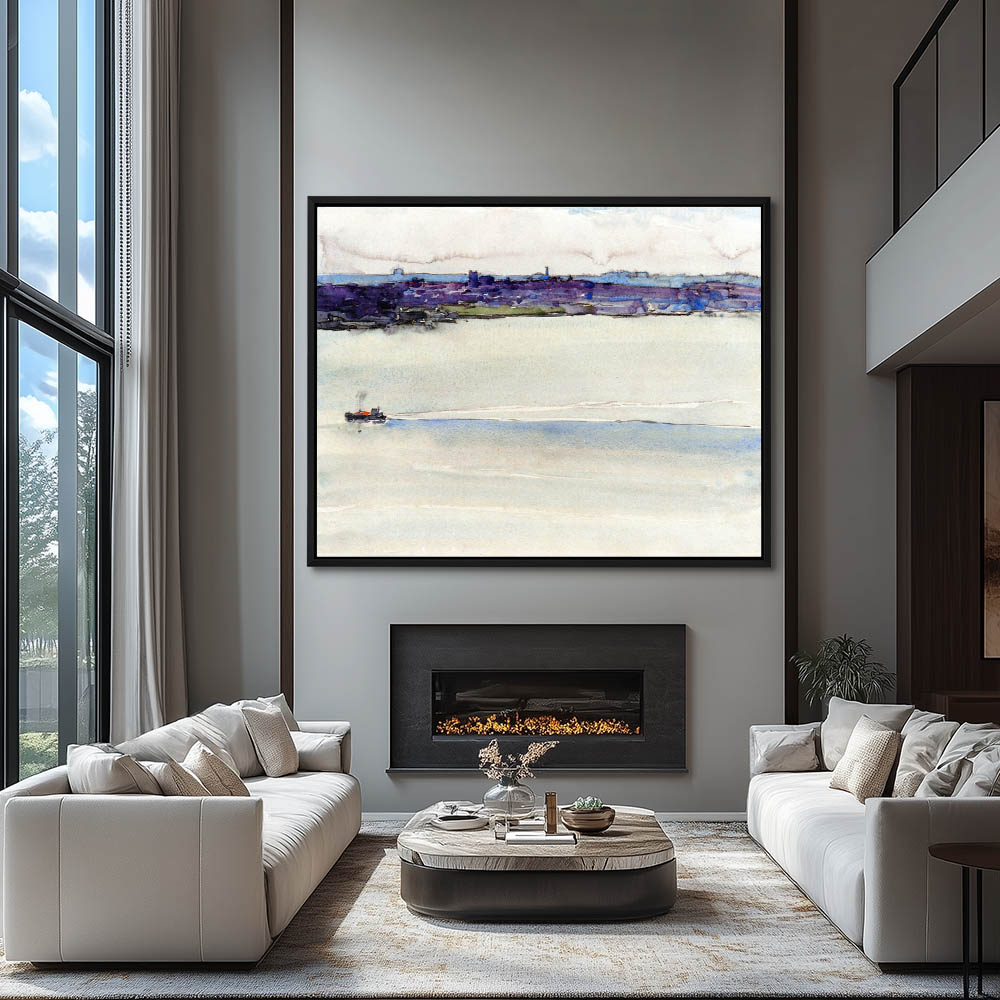 Coastline with a ship sailing by