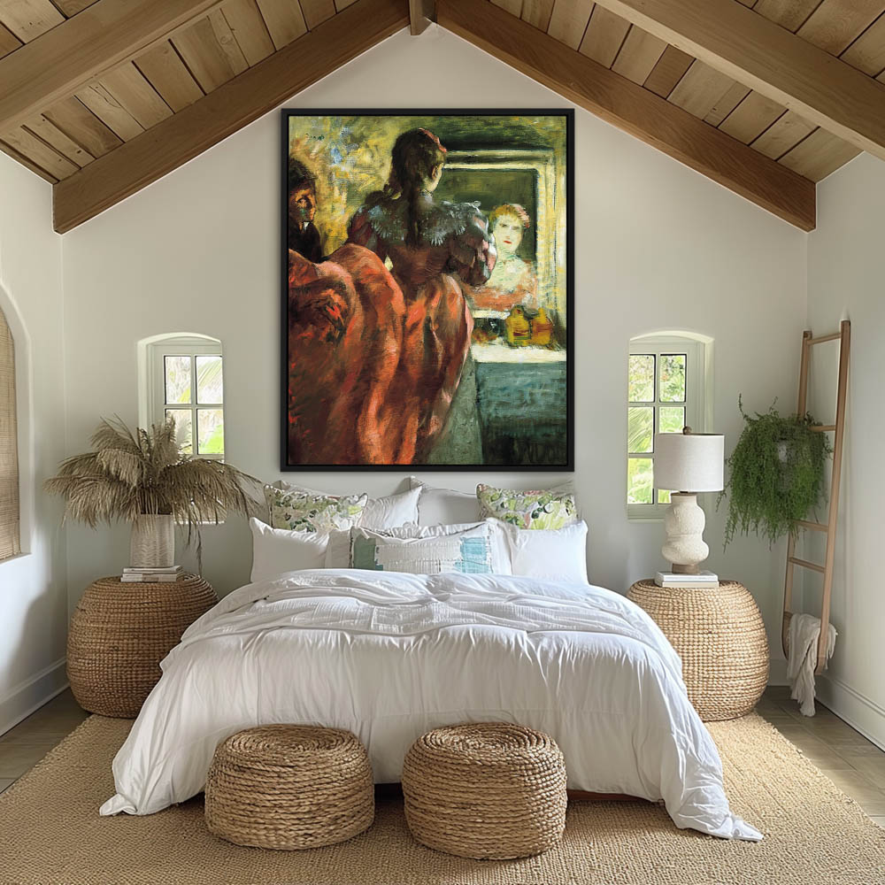 Actress in costume taking one last look in the mirrow of her dressing room
