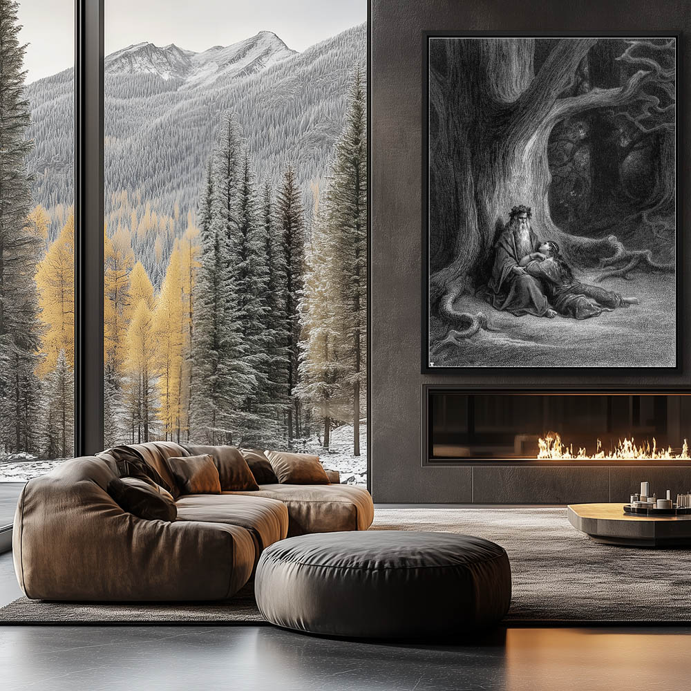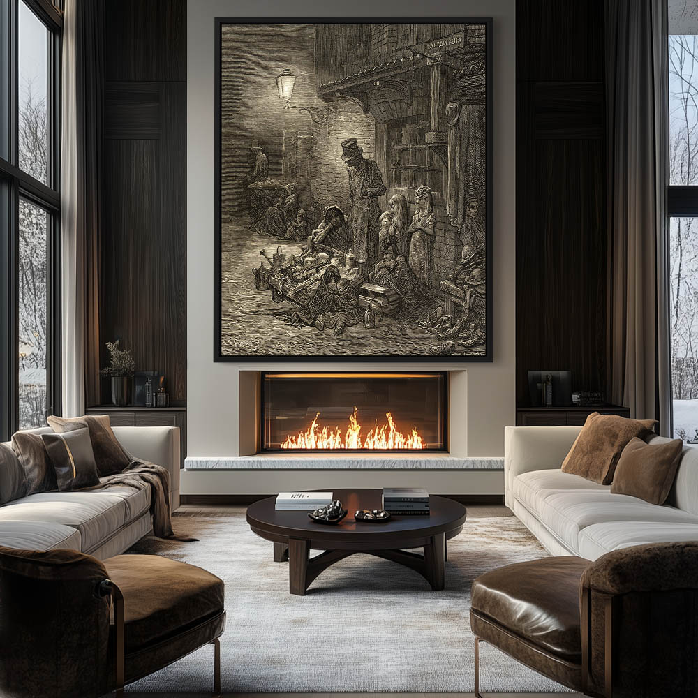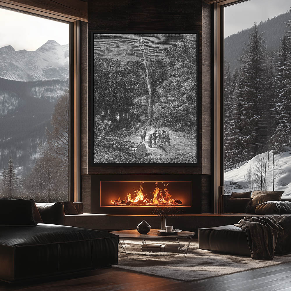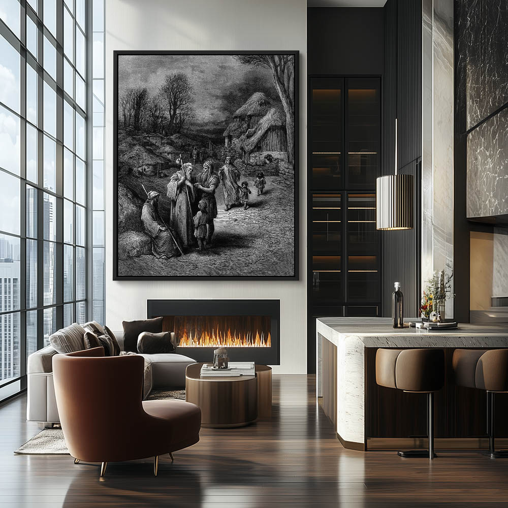 Vintage Etching of Hospitality of Barbarians to Pilgrims