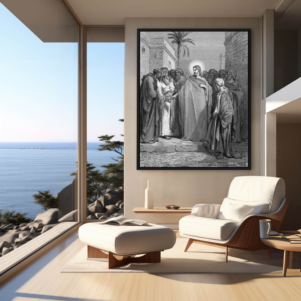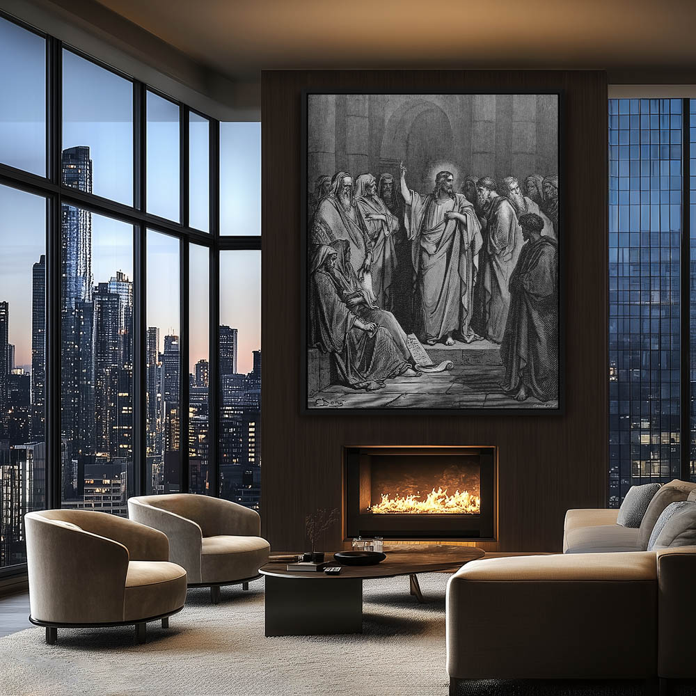 Vintage Etching of Christ In The Synagogue
