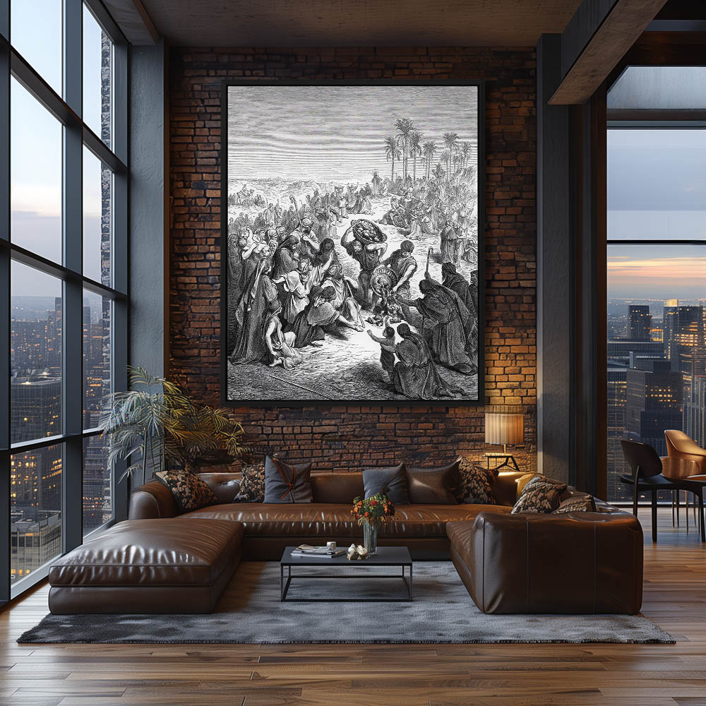 Vintage Etching of Christ Feeding The Multitude