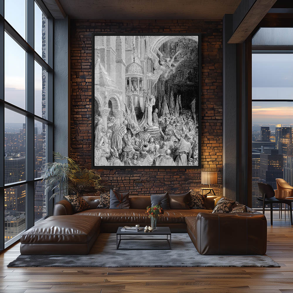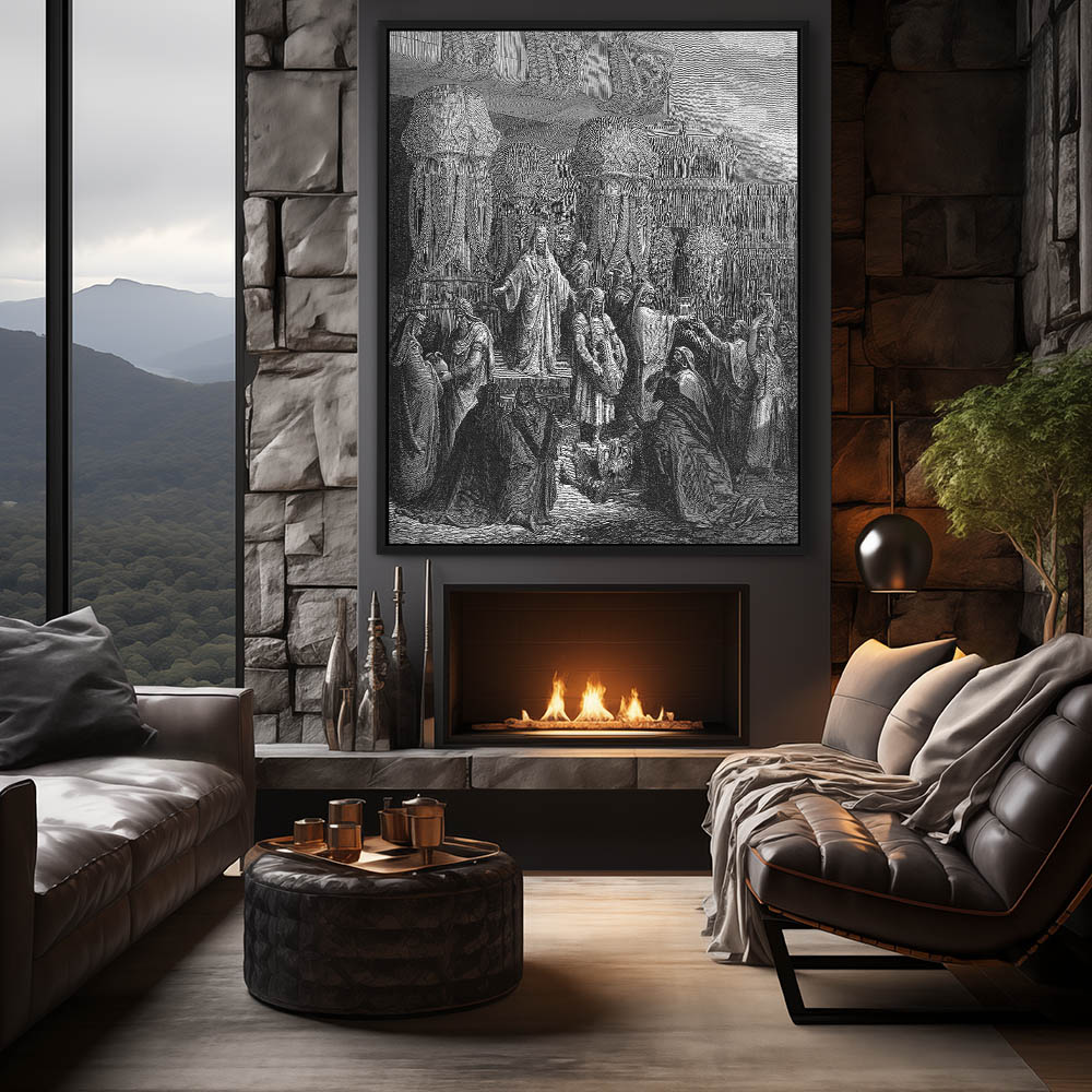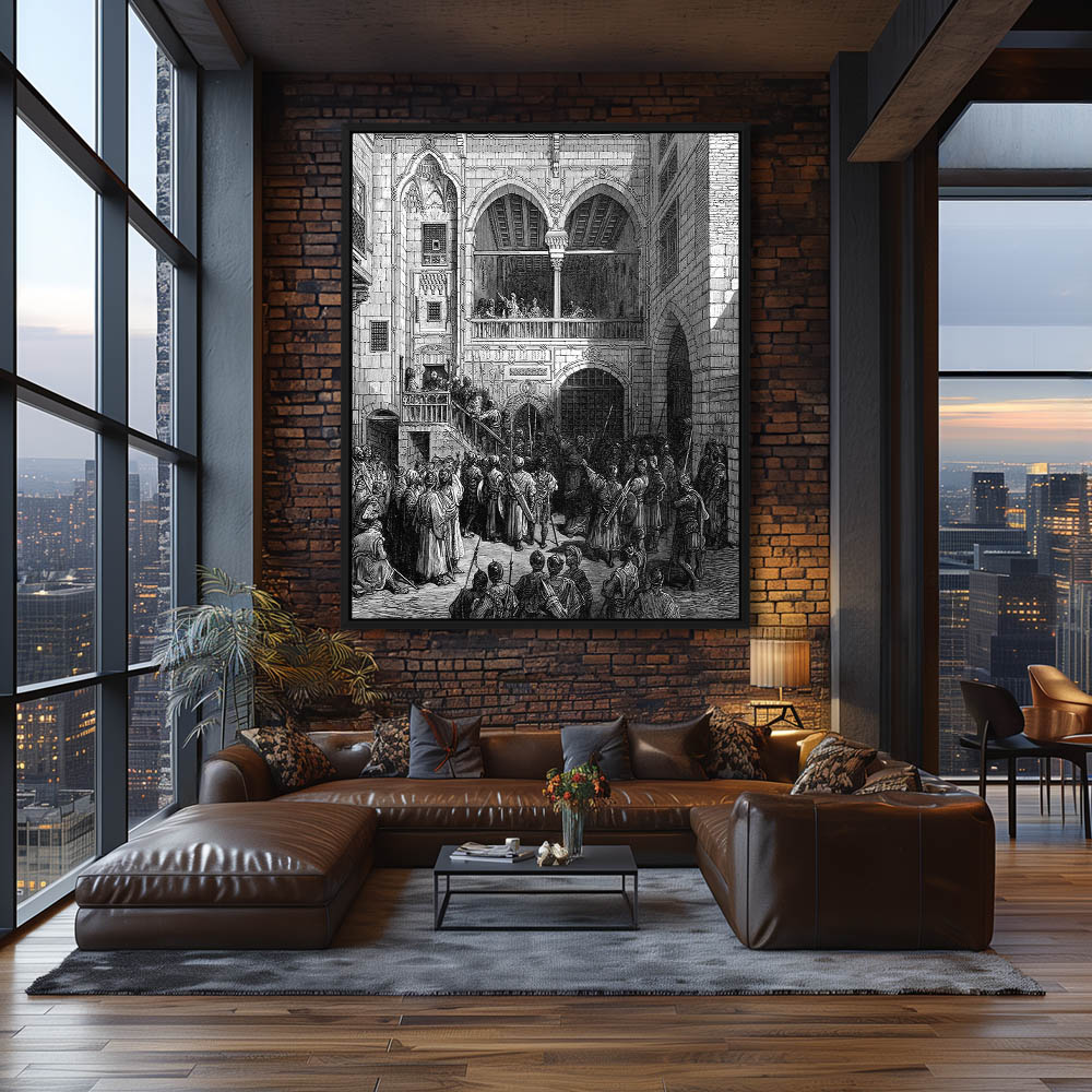 Vintage Etching of Constantine Palaeologus Haranguing the Defenders of Constantinople