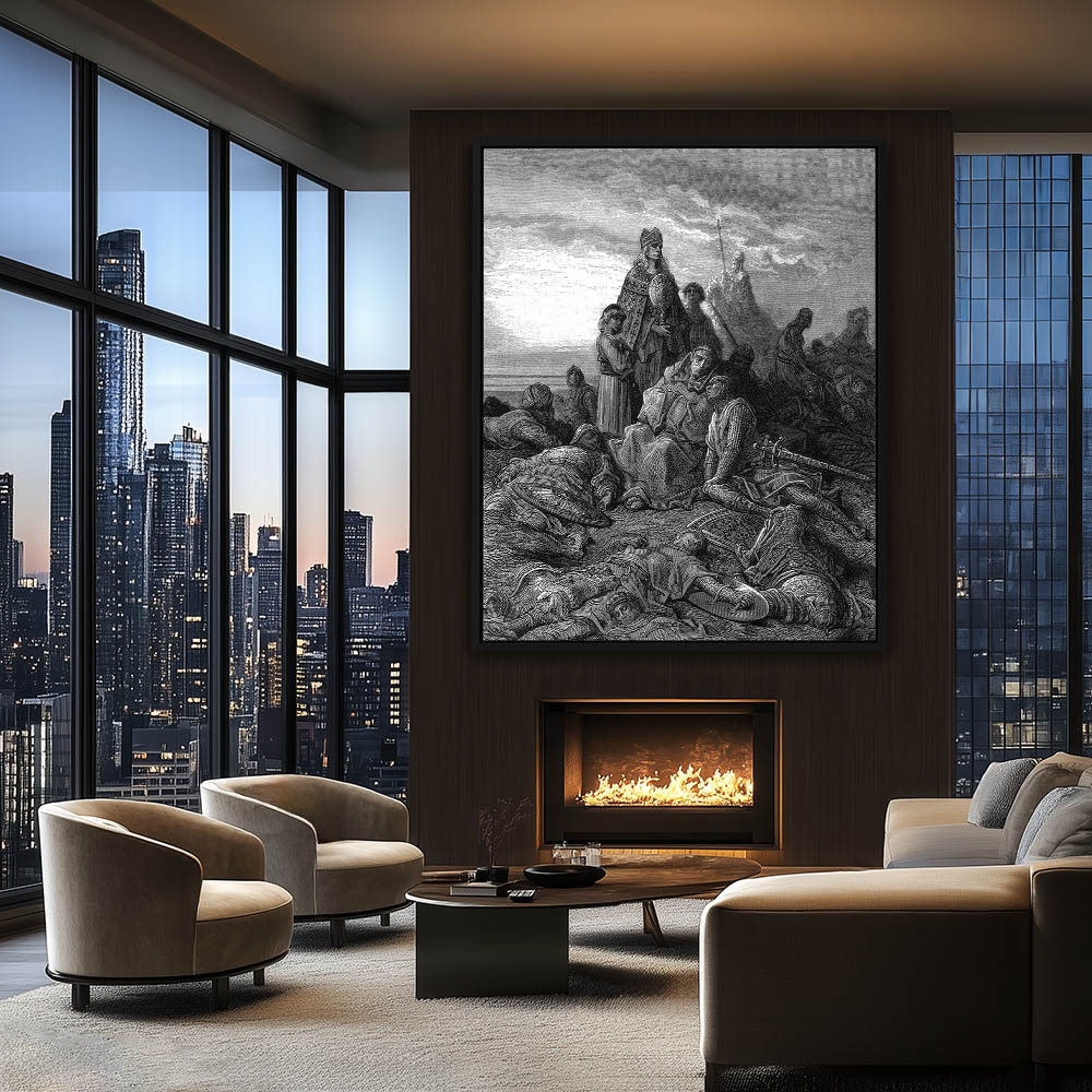 Vintage Etching of Crusaders surrounded by Saladin’s army from the Crusades