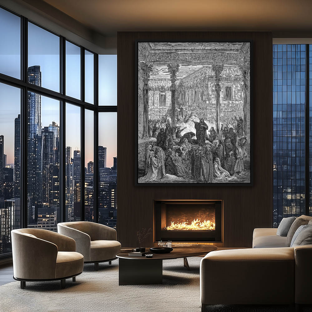 Vintage Etching of Daniel Interpreting the Writing on the Wall