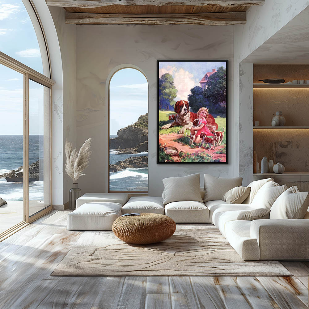 From $29.97Landscape Painting with a Girl in the Grass with a Dog and Puppies