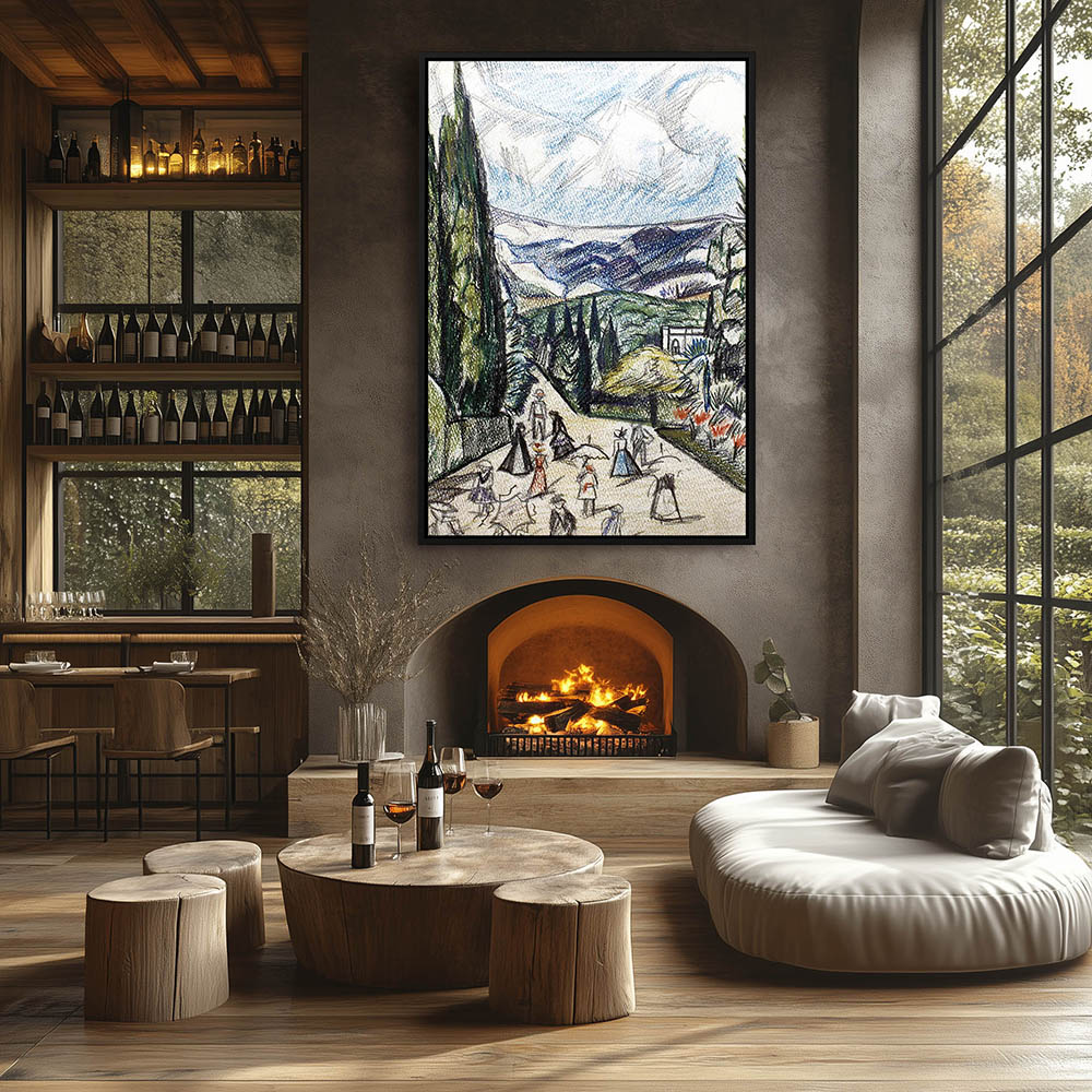Vintage Landscape Drawing with Figures