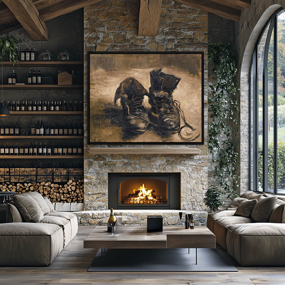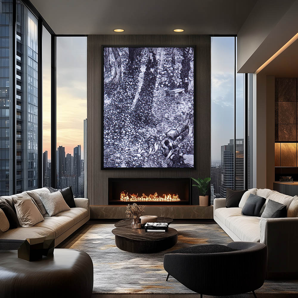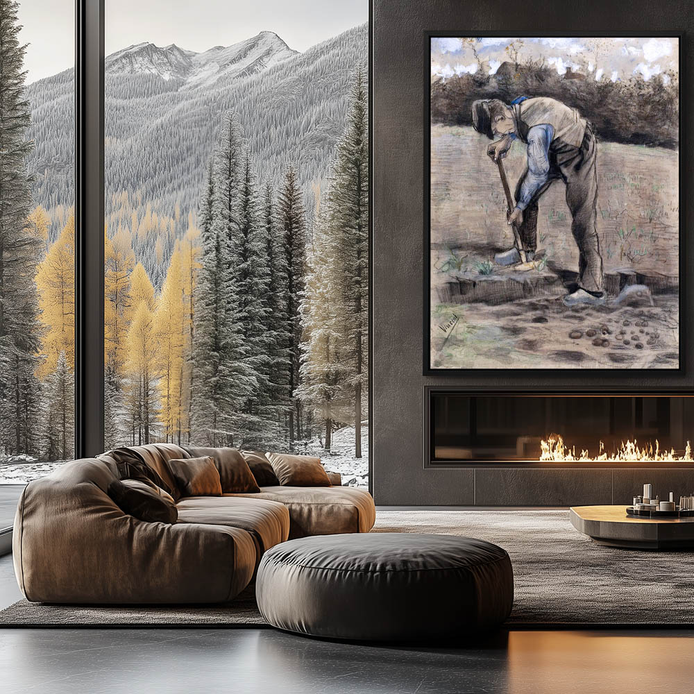Impressionist Painting of a Cow Pulling a Cart with Crows