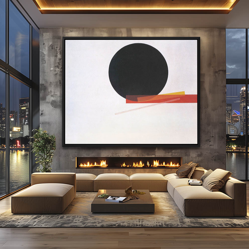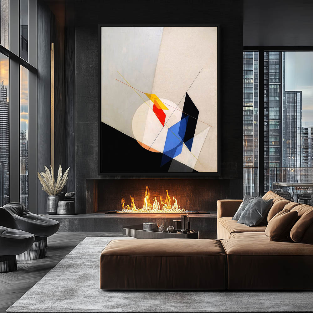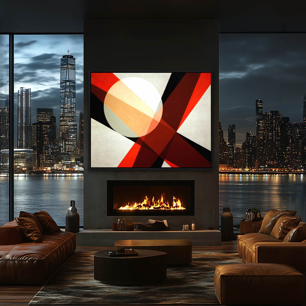 Abstract geometric composition with a translucent white circle and overlapping shapes