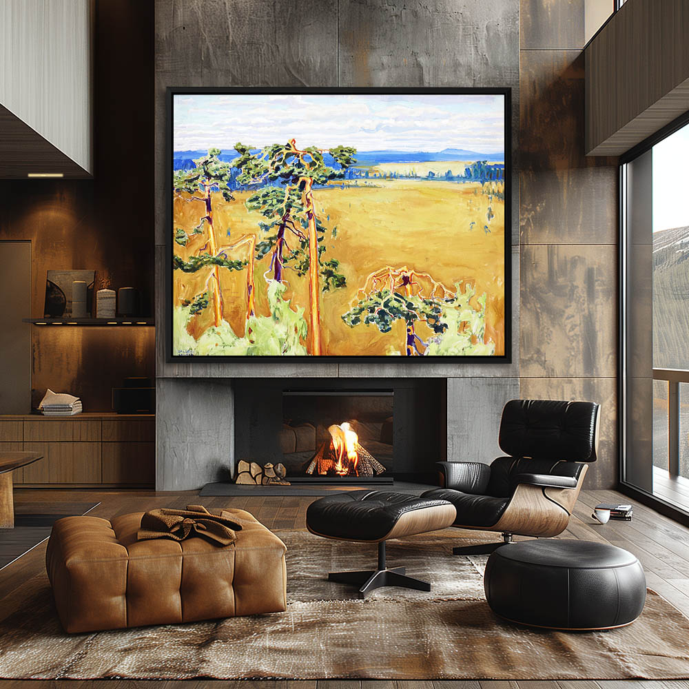 Impressionist Abstract Landscape Painting of Farmland and Distance Mountains