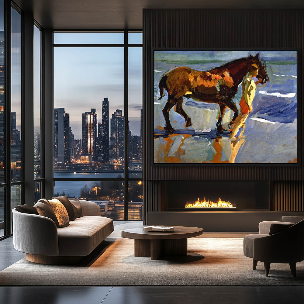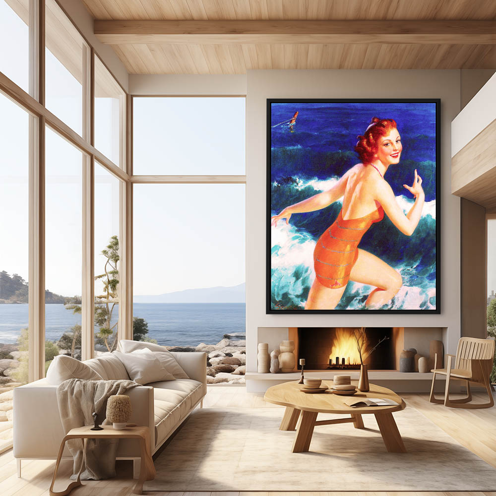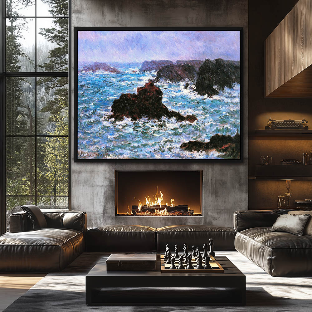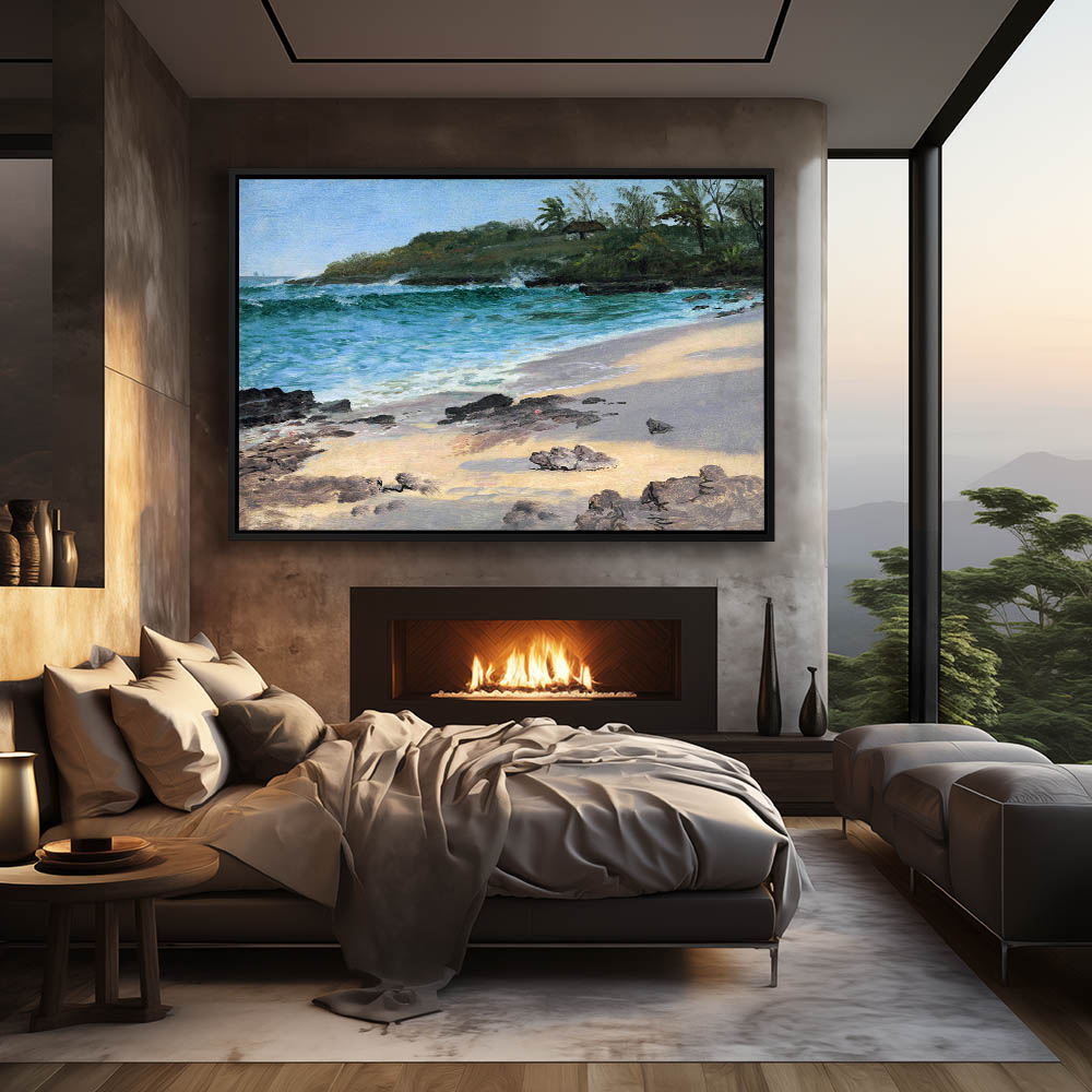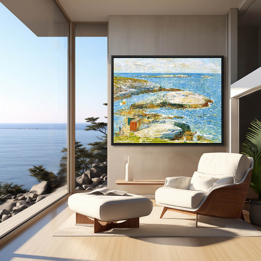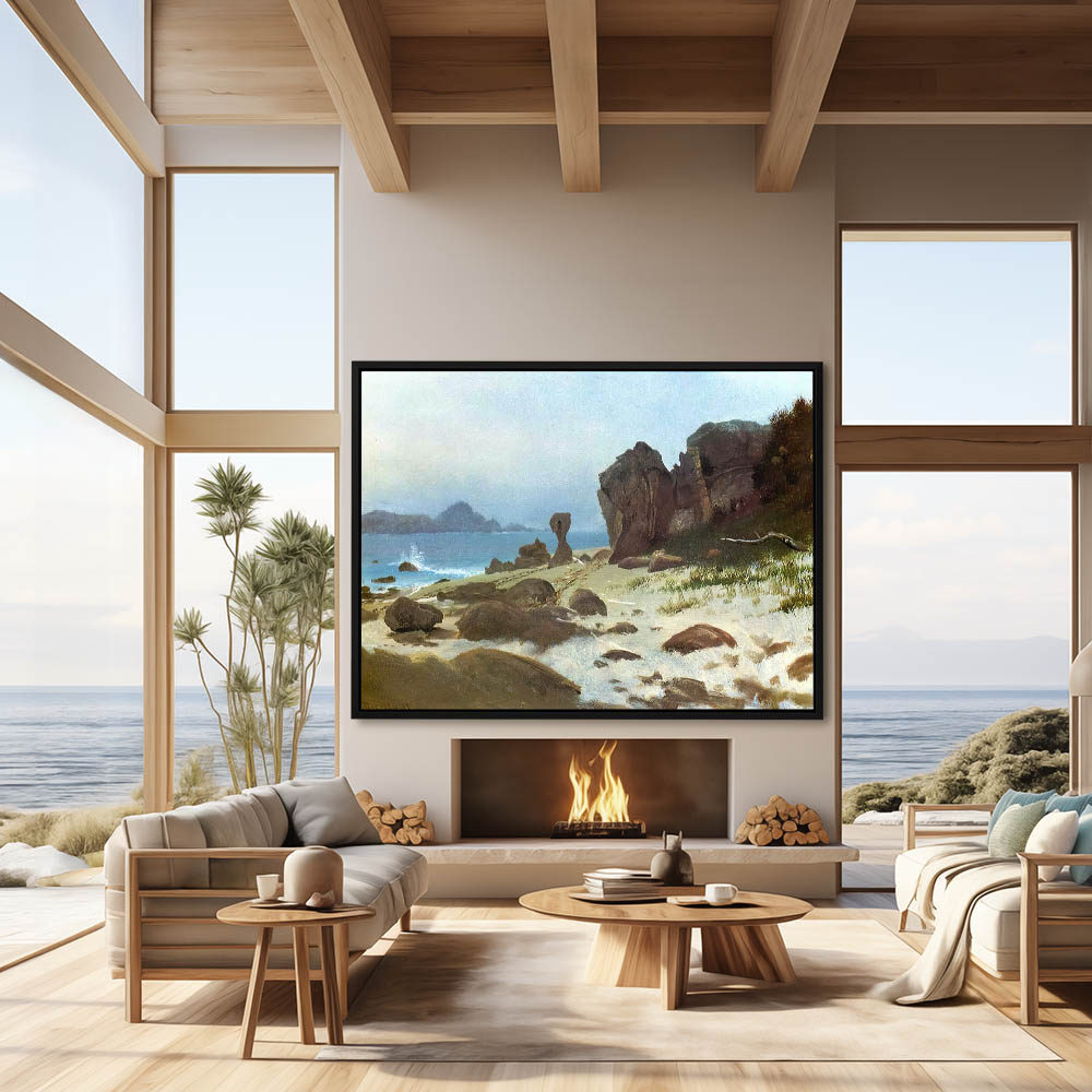 Vintage Seascape Painting with Cliffs on the Shoreline
