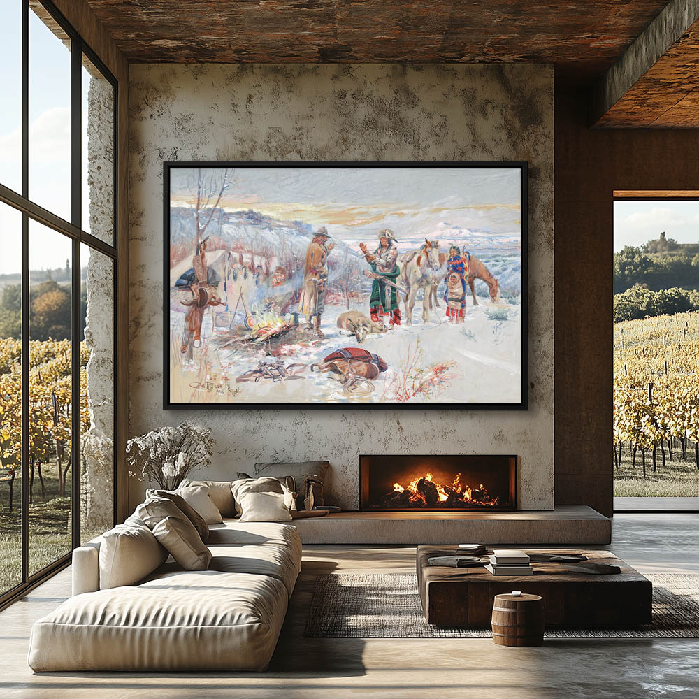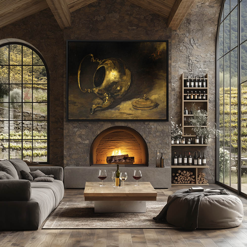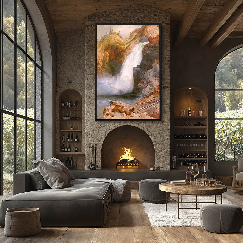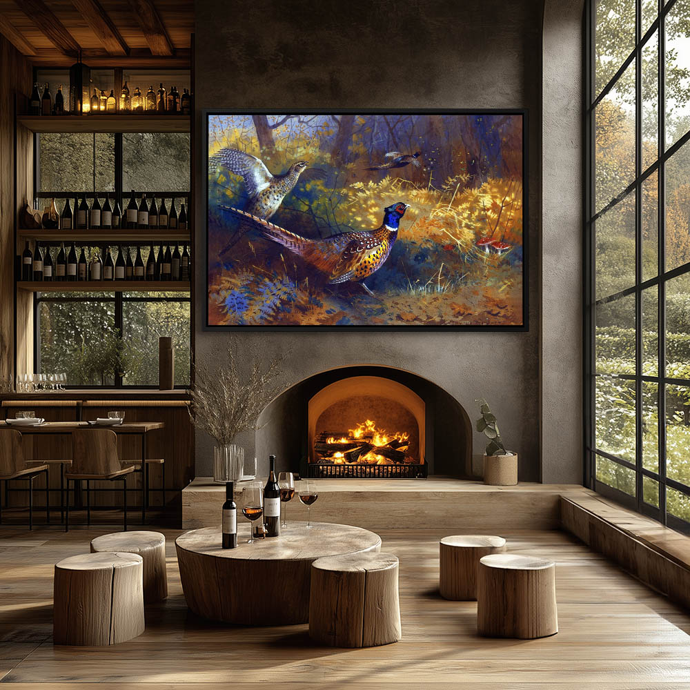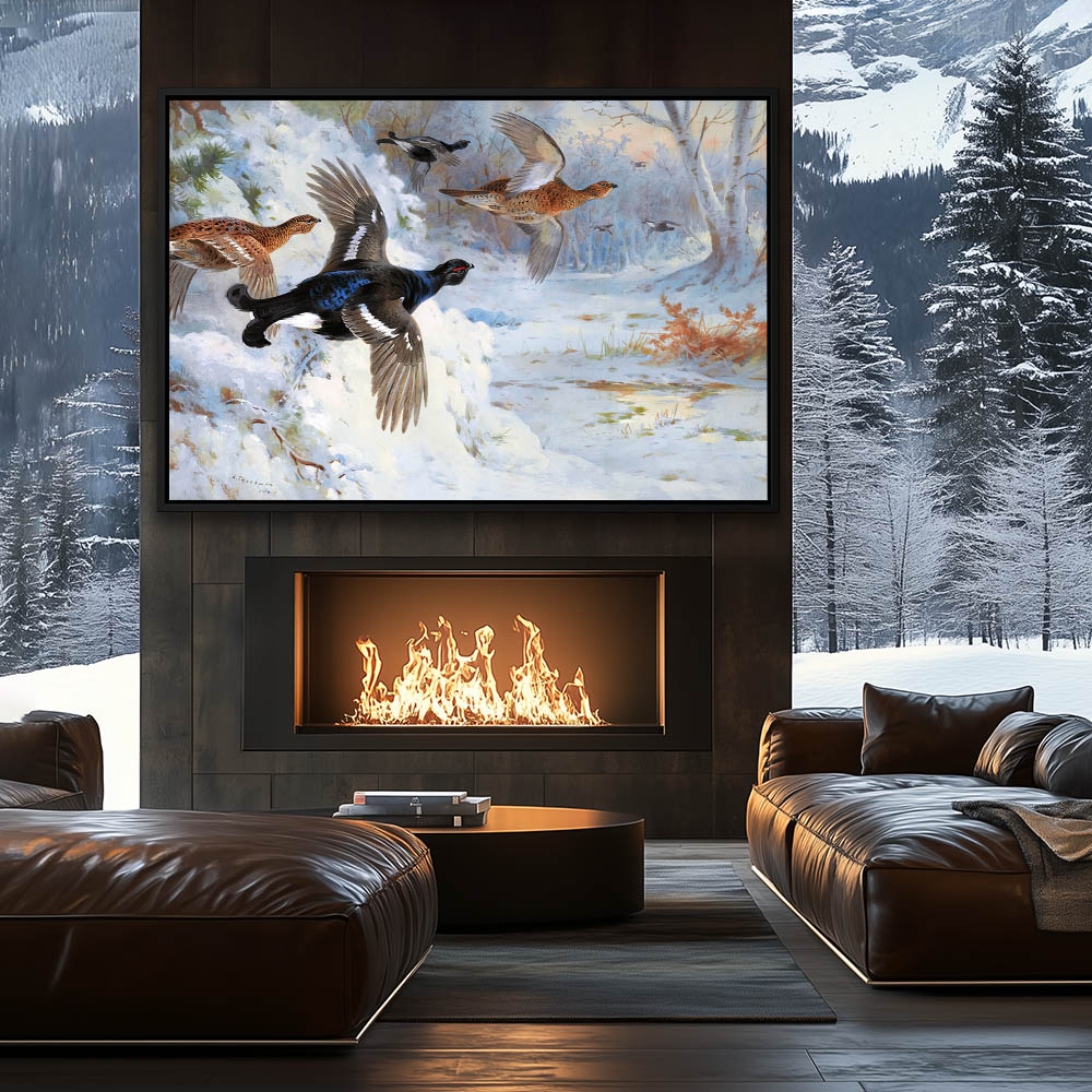 Forest Landscape Painting with Blackgame Flying through the Trees