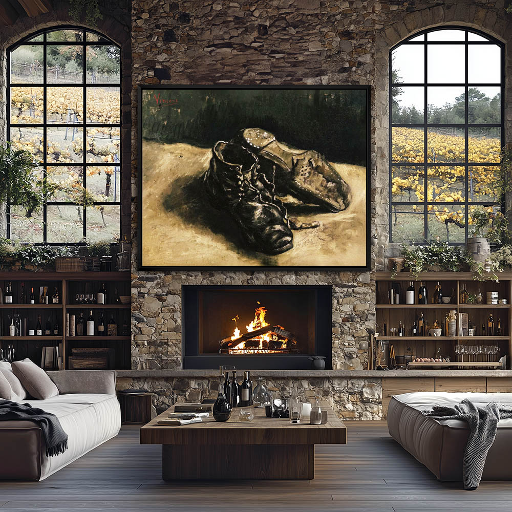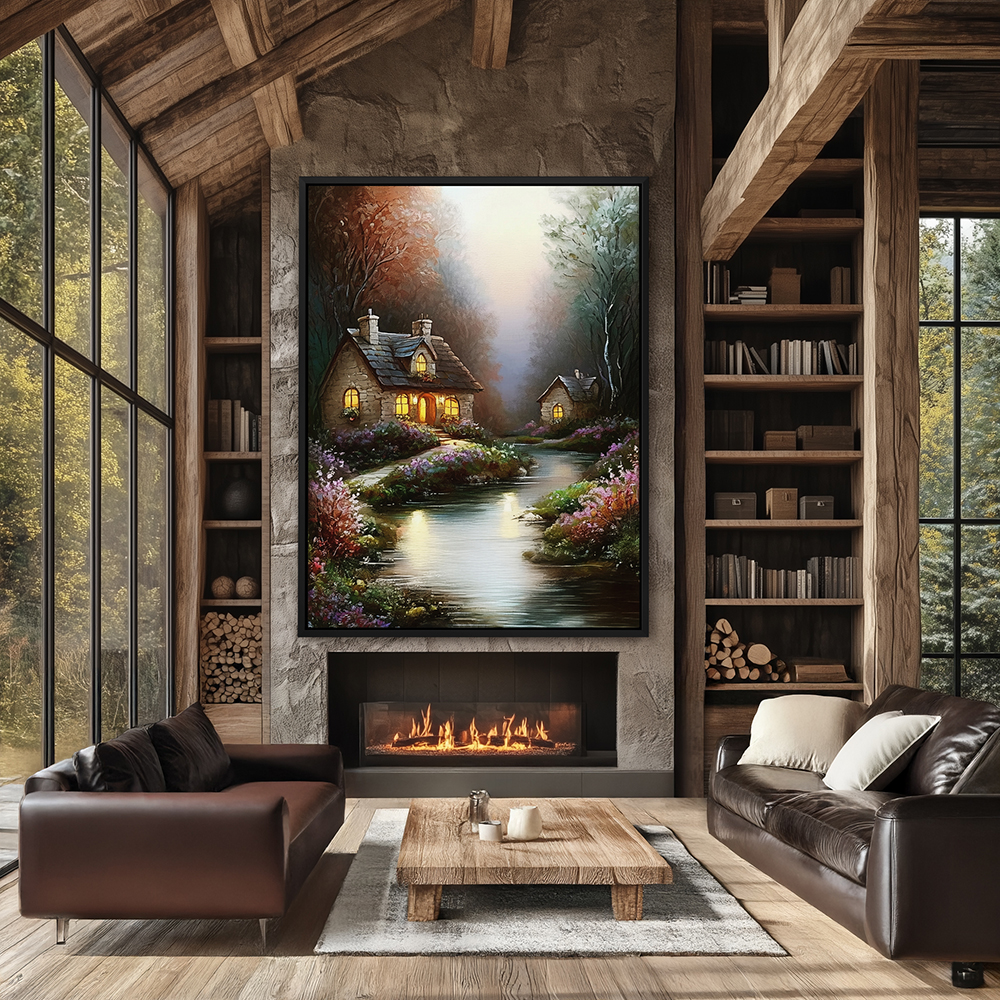 Beautiful Painting of a Cabin by a Stream for Home Wall Decor, Large Framed Canvas Wall Art