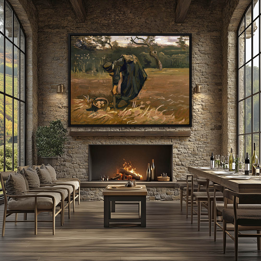 Impressionist Landscape with Figure Digging in the Fields for Potatoes