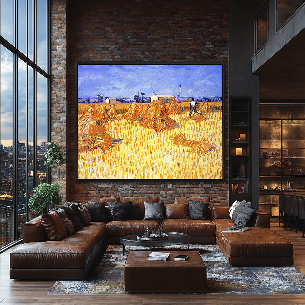 Impressionist Abstract Landscape Painting of Farmland with Figures Working