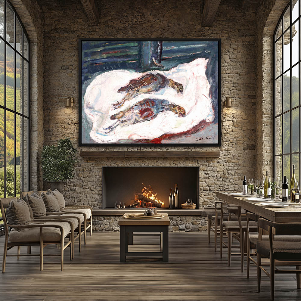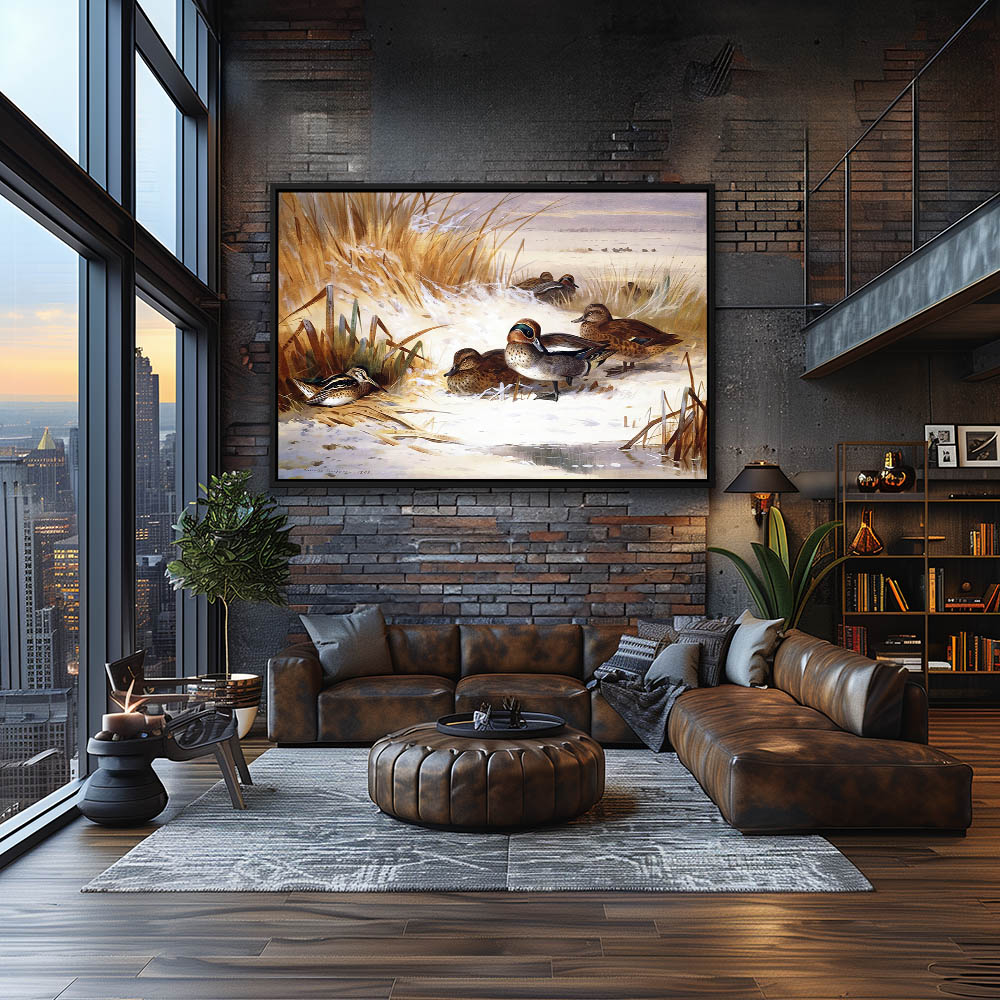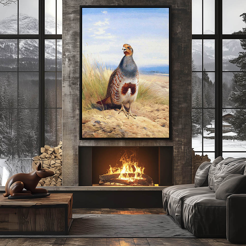 Abstract Still Life with Two Partridges in Front of Green Shutters