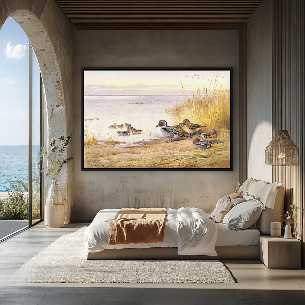 Painting of a Pheasant in Flight Under the Tree Canopy