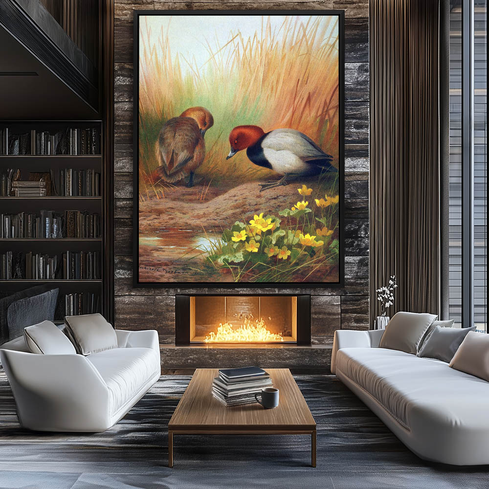 Painting of Ducks in the Tall Grass with Yellow Flowers