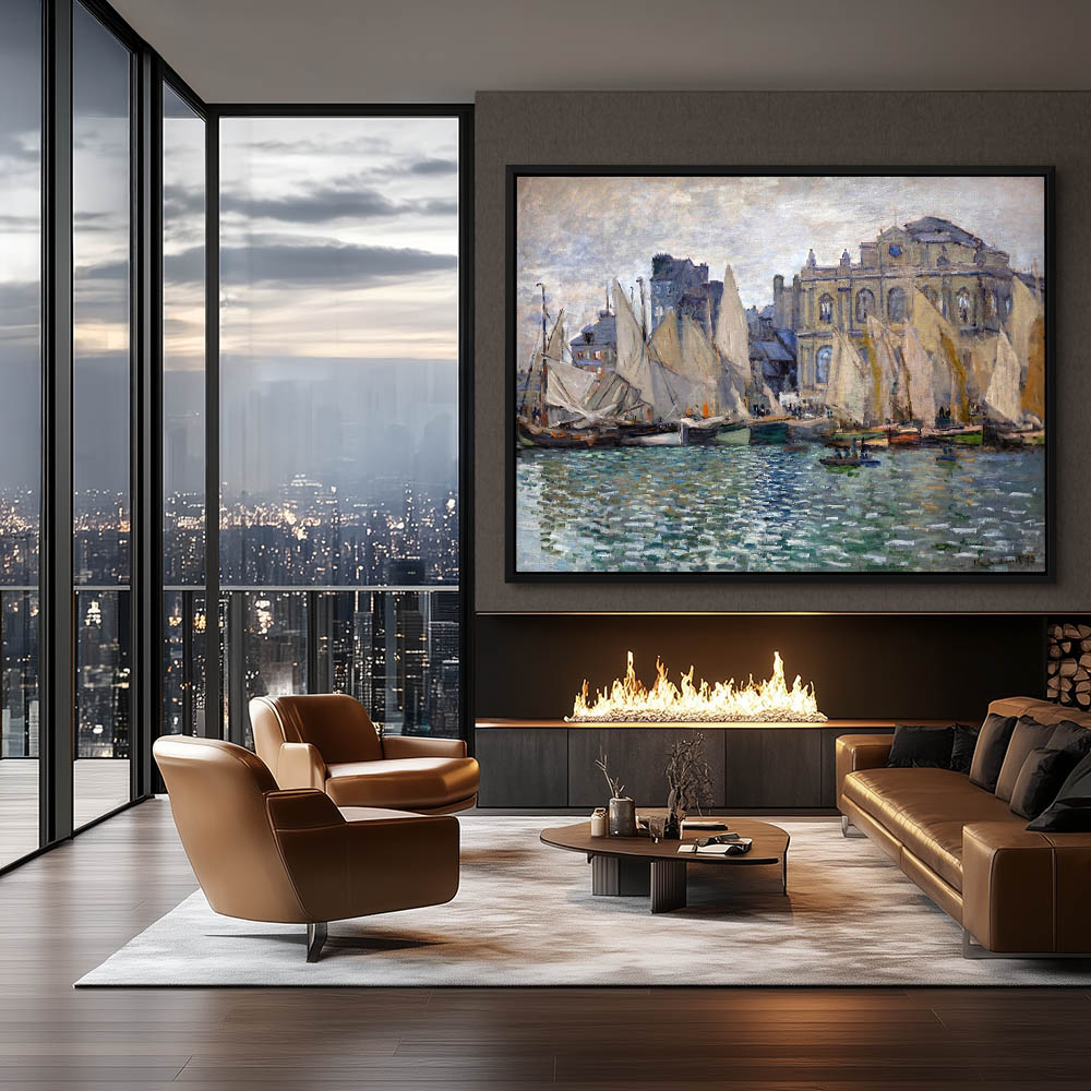 Wall Art Home Decor with Sail Boats at Sea, Large Framed Canvas Wall Art, Black, White and Brown Floater Frames, Metal Wall Art