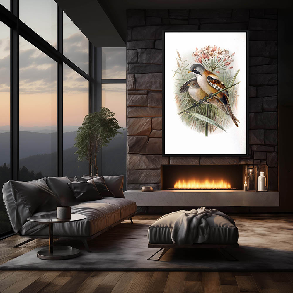Painting of Birds Resting on a Flower Stem