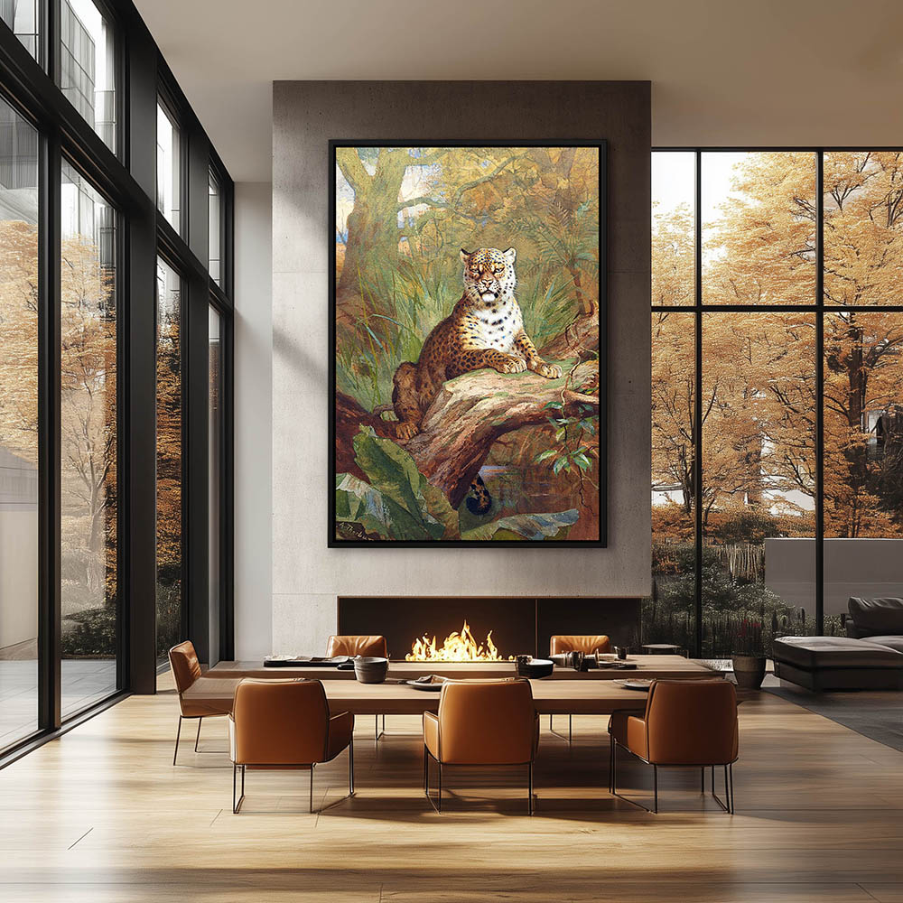 Forest Landscape Painting with a Leopard Resting in a Tree