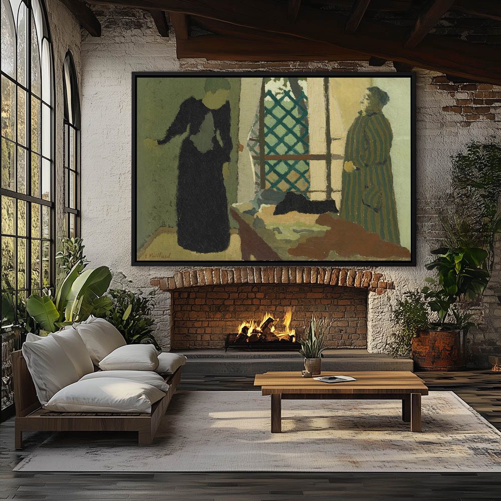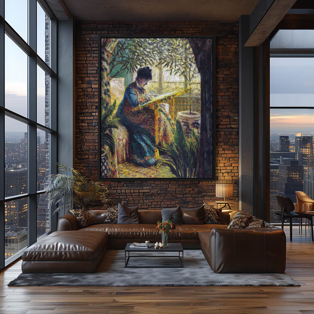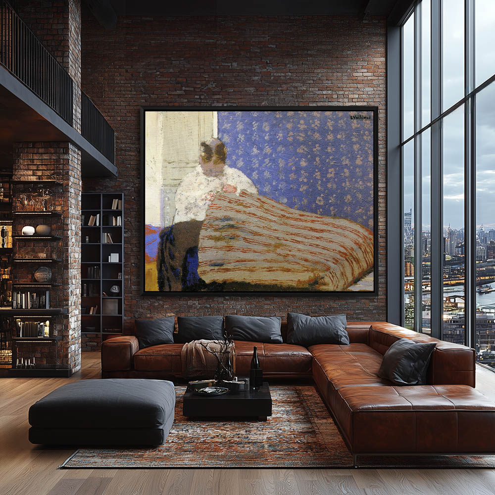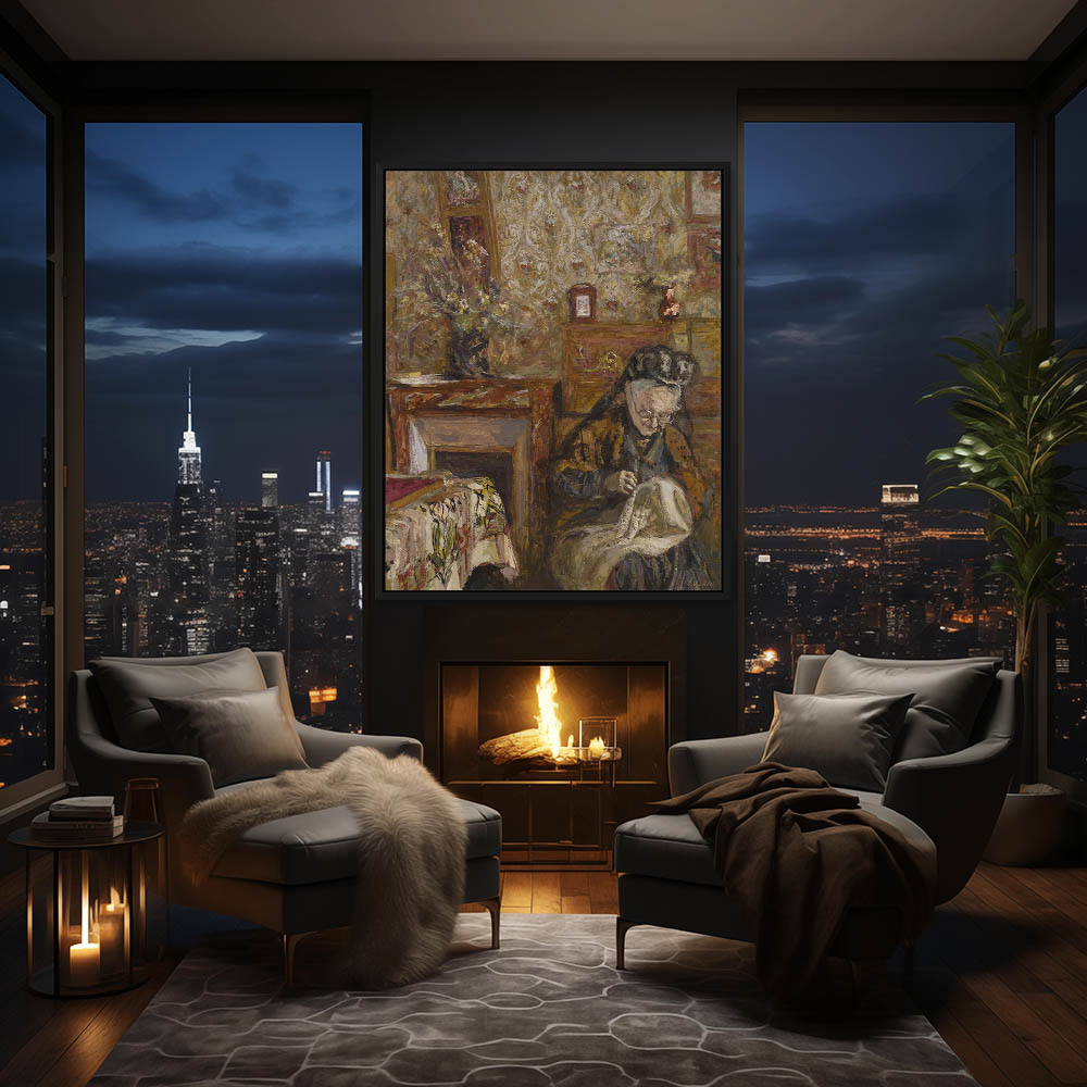 Vintage Figurative Painting with the Artist Grandmother Sewing at the Kitchen Table