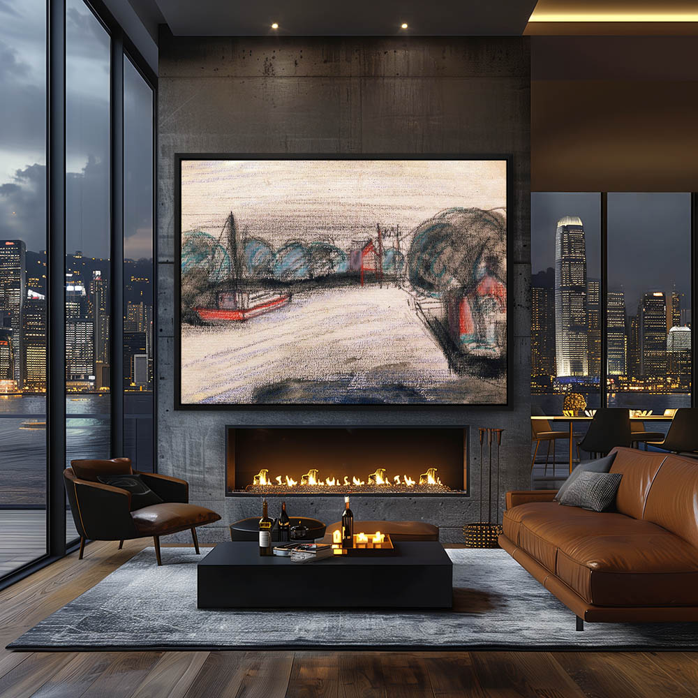 Abstract Industrial Landscape Painting of the Mills in Paterson New Jersey